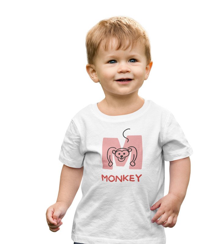 Monkey Love, Boys Cotton Text Print tshirt (white)