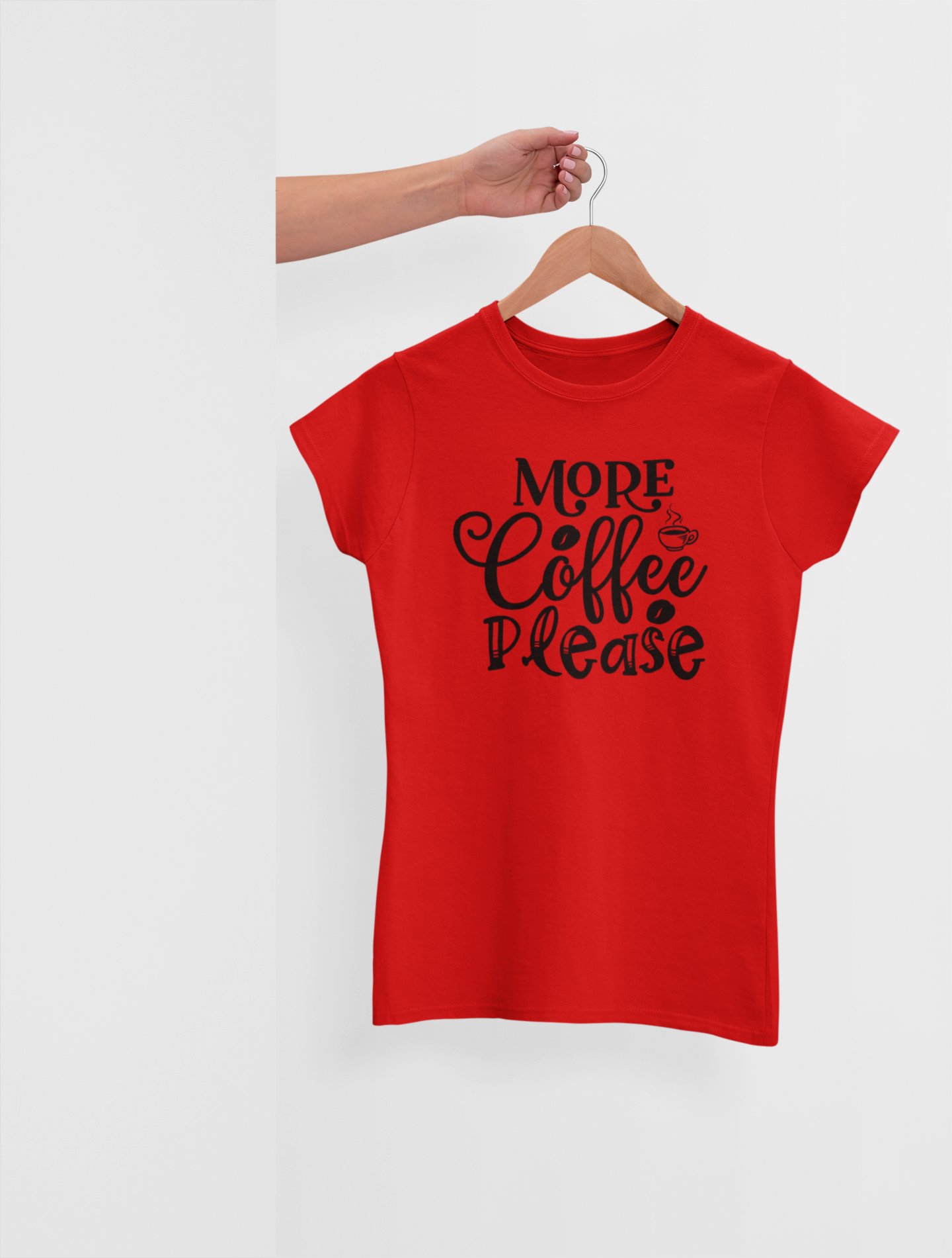 More Coffee please - Red - printed t shirt - comfortable round neck cotton.