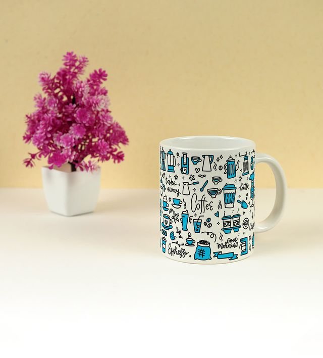 Morning Coffee Doodles and Vibes Design Printed Coffee Mug 250ml