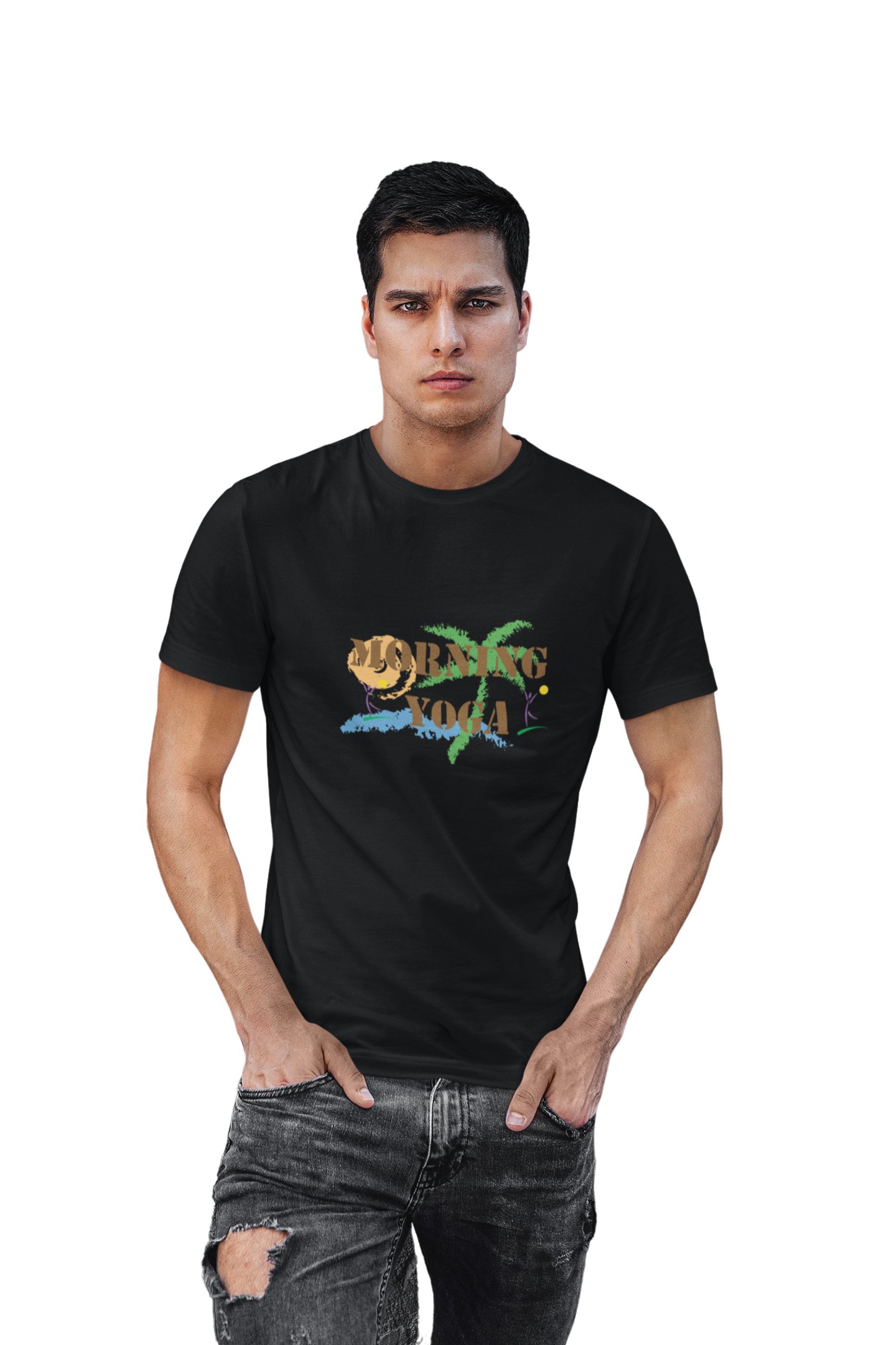Morning Yoga - Black - Comfortable Yoga T-shirts for Yoga Printed Men's T-shirts (Medium, Black)