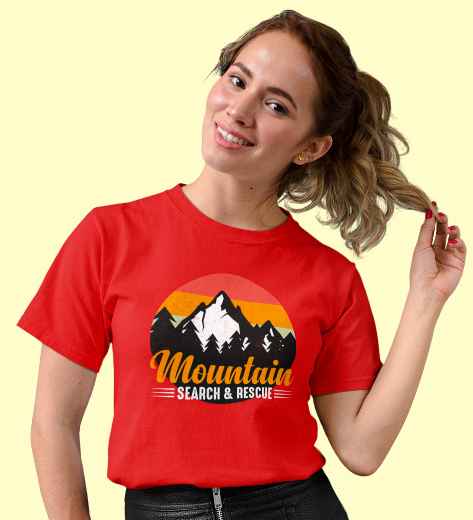 HopOfferSearch And Rescue Red Round Neck Cotton Half Sleeved Women's T-Shirt with Printed Graphics