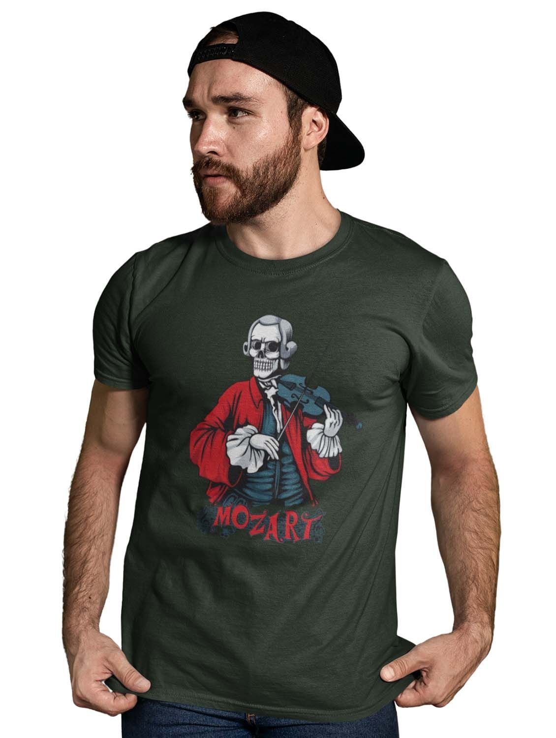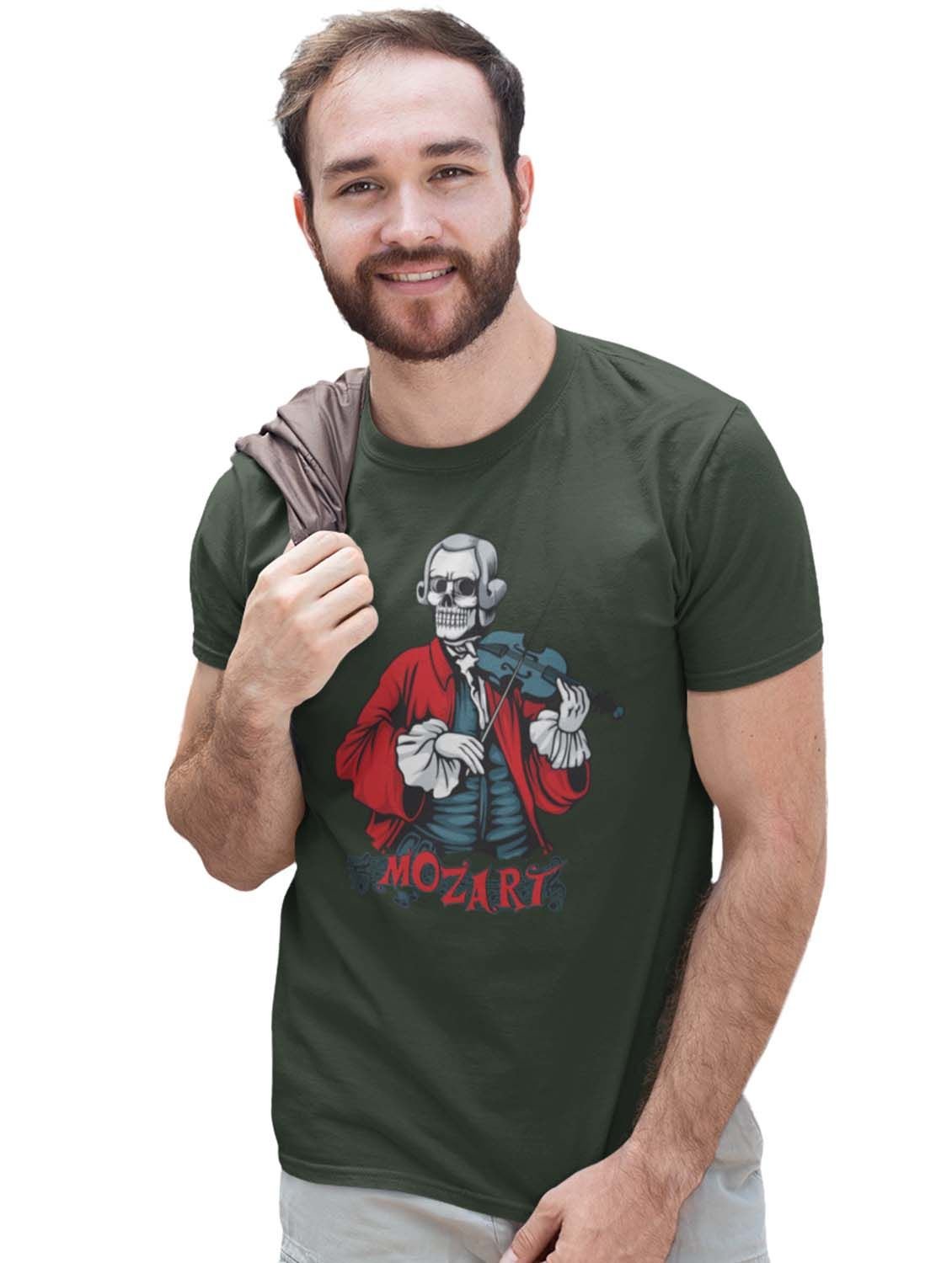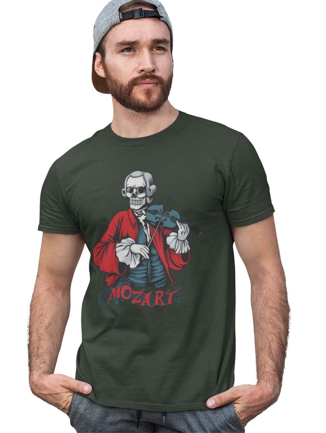 Mozart- The Composer Green Round Neck Cotton Half Sleeved T-Shirt with Printed Graphics