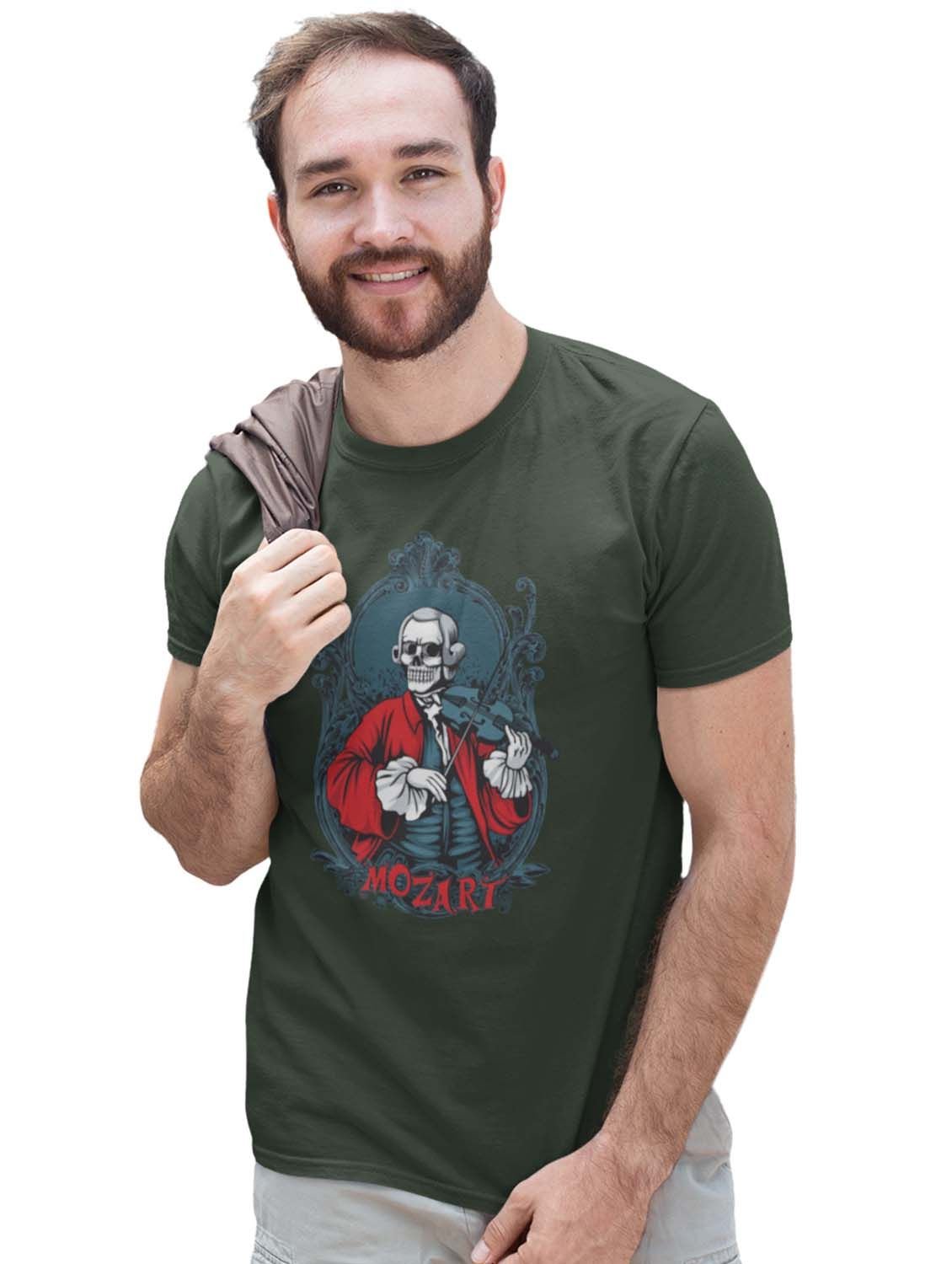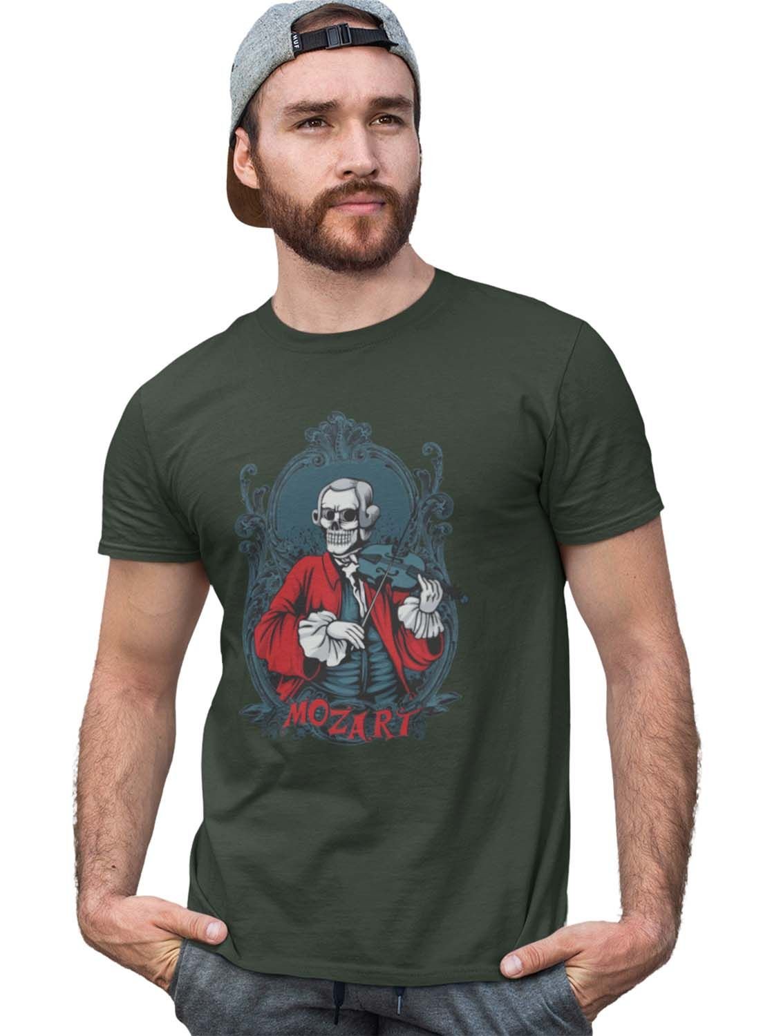 Mozart 35 Green Round Neck Cotton Half Sleeved T-Shirt with Printed Graphics