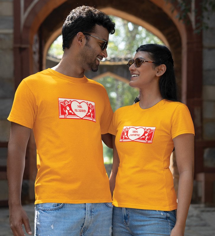 Mr Aladdin/Mrs Jasmine Printed Couple (Yellow) T-shirts