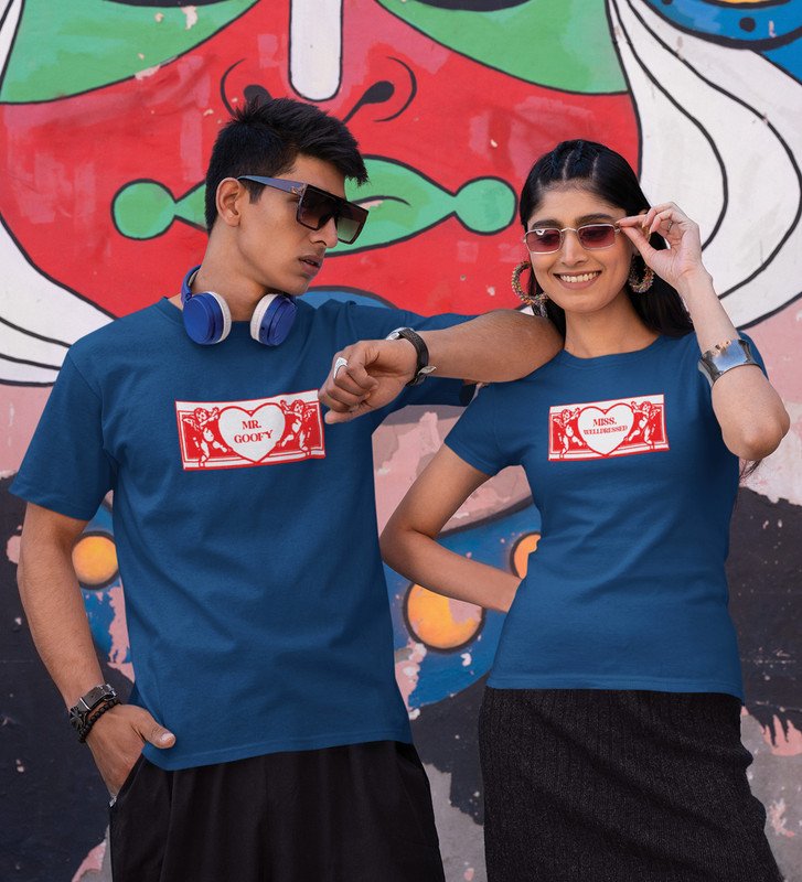 Mr Goofy/Mrs Well-Dressed Printed Couple (blue) T-shirts