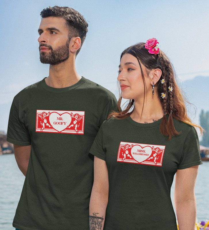 Mr Goofy/Mrs Well-Dressed Printed Couple (green) T-shirts