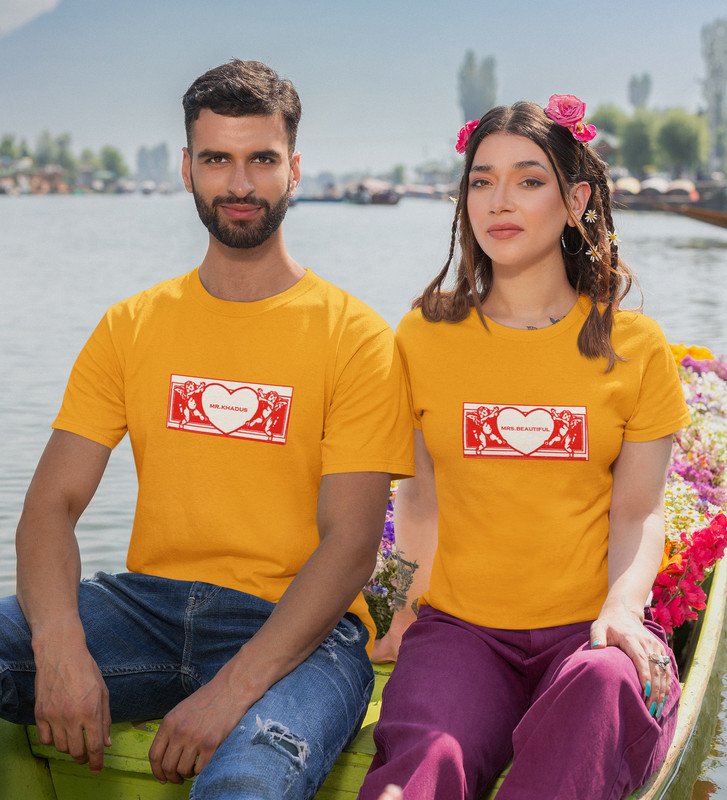 Mr Khadoos/Mrs Beautiful Printed (Yellow) T-shirts For Couples