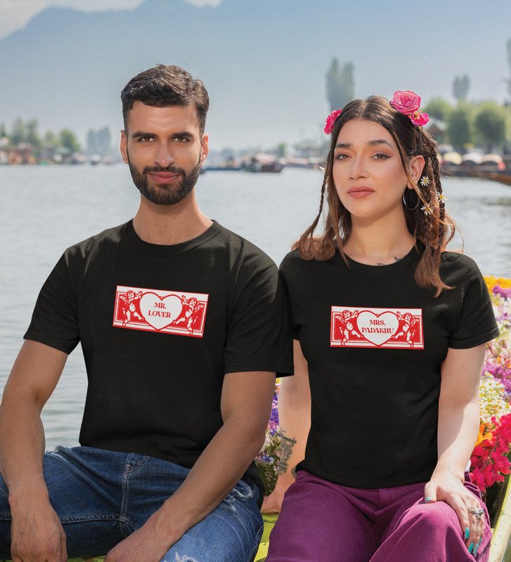 Mr Lover/Mrs Padhaku Printed Couple (Black) T-shirts