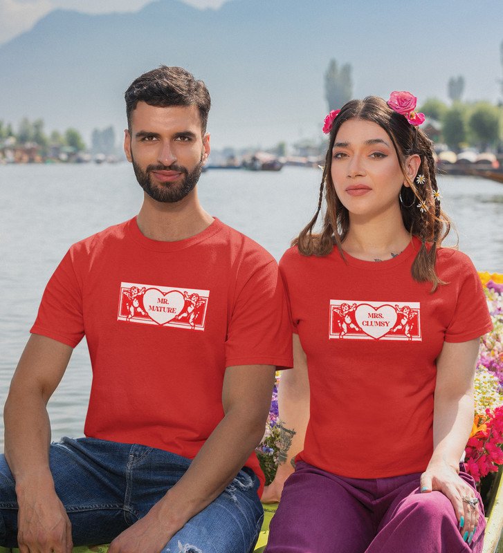 Mr Mature/Mrs Clumsy (Red) T-shirts Printed For Couples