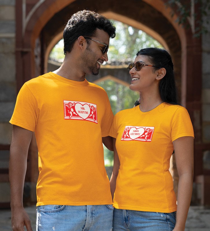 Mr Mature/Mrs Clumsy (Yellow) T-shirts Printed For Couples