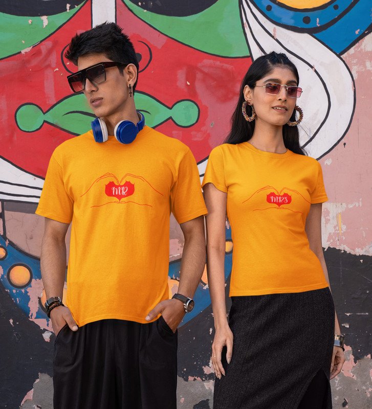 Mr/Mrs Printed Couple (Yellow) T-shirts