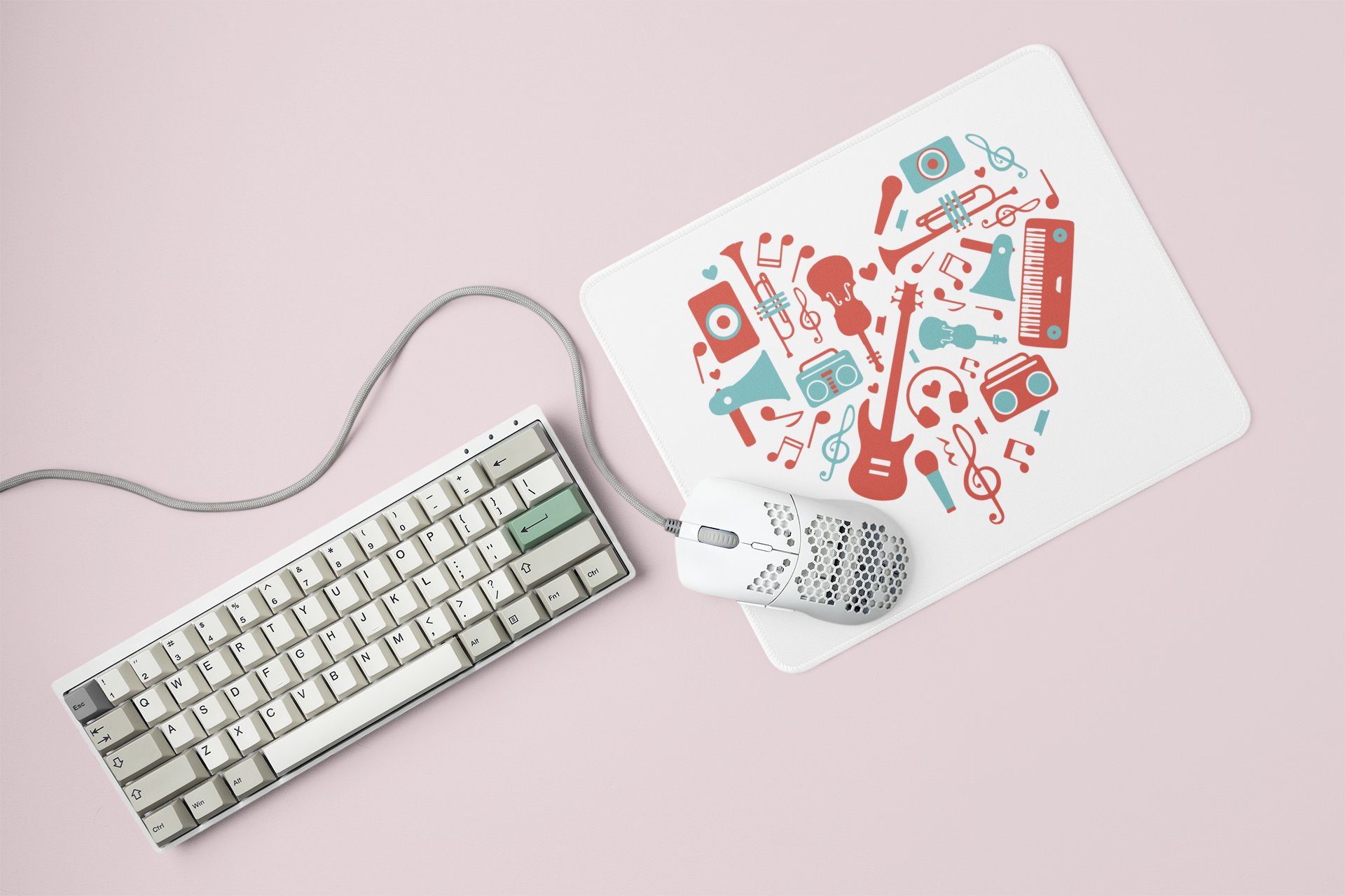 Musical instrument (Red ) Printed In Heart- Printed Mousepads For Music Lovers