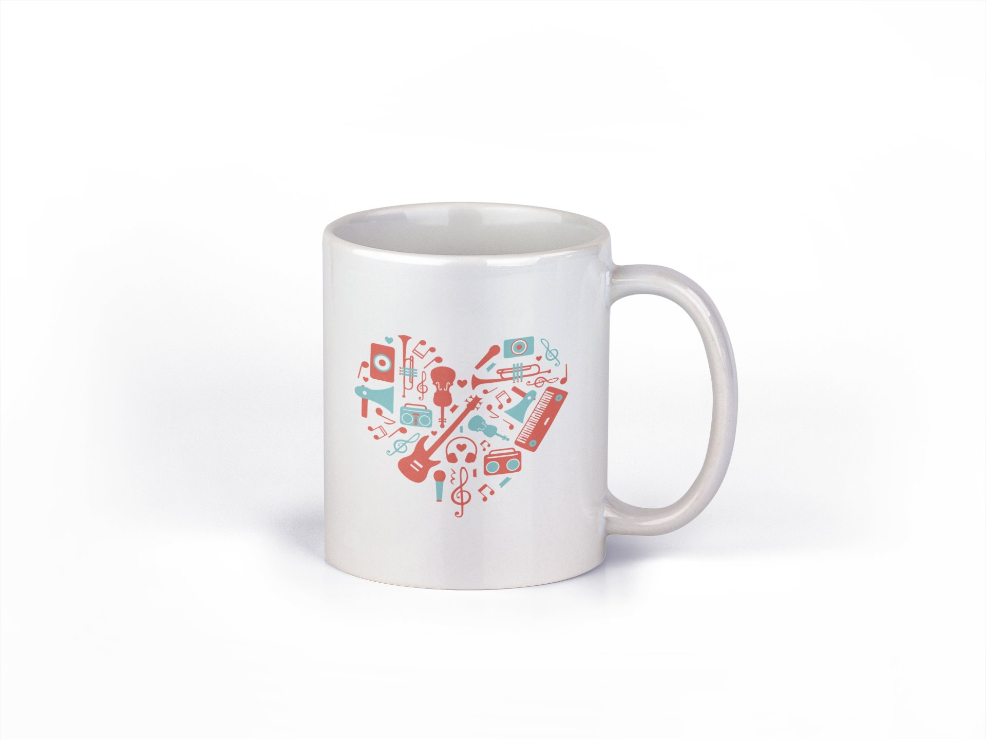 Musical instrument(Red) Printed In Heart- music themed printed ceramic white coffee and tea mugs/ cups for music lovers