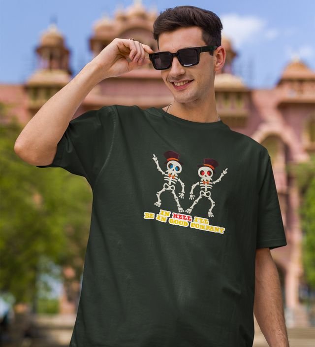 My Company For Hell Green Round Neck Cotton Half Sleeved Men T-Shirt with Printed Graphics