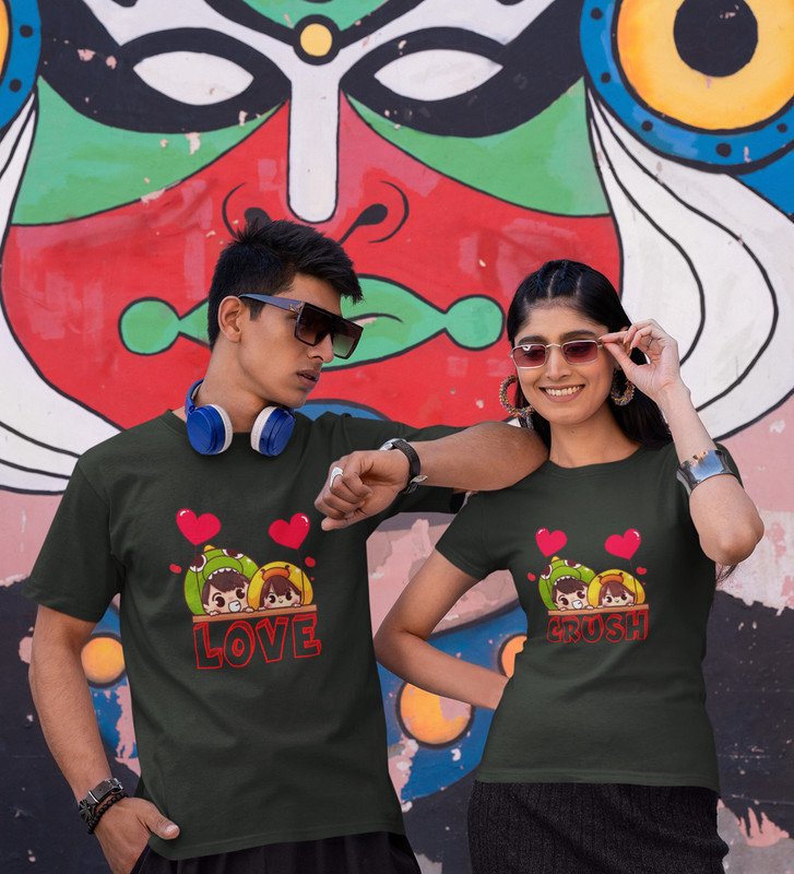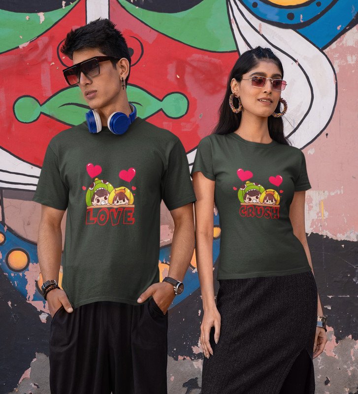 My Crush Is My Love Cutest Printed (green) T-shirts For Couples