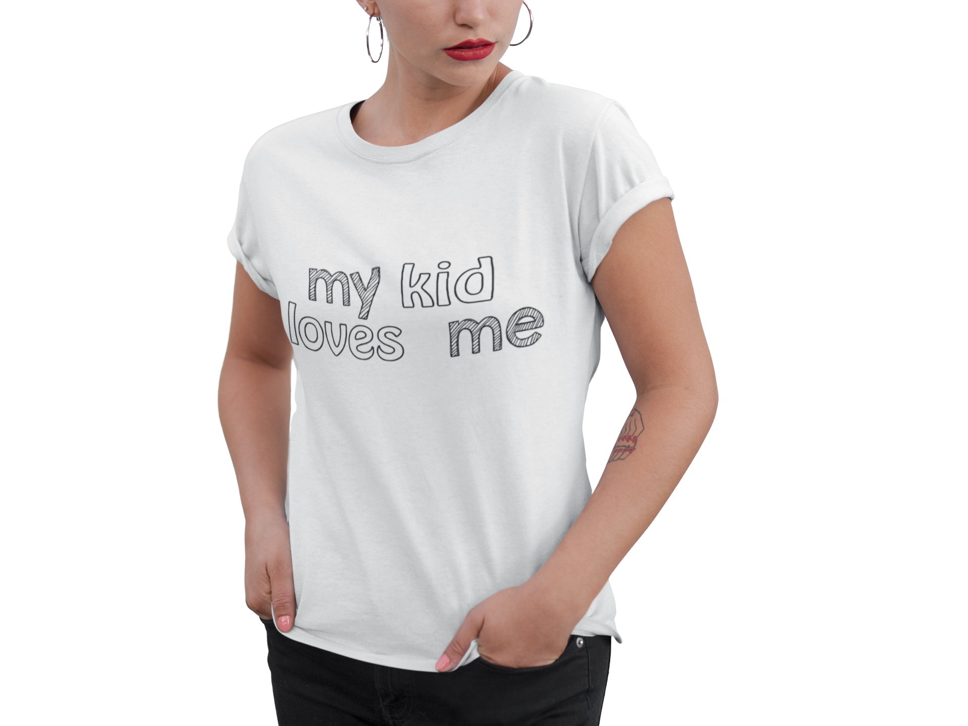 My kid loves me-printed family themed cotton blended half-sleeve t-shirts made for women (white)