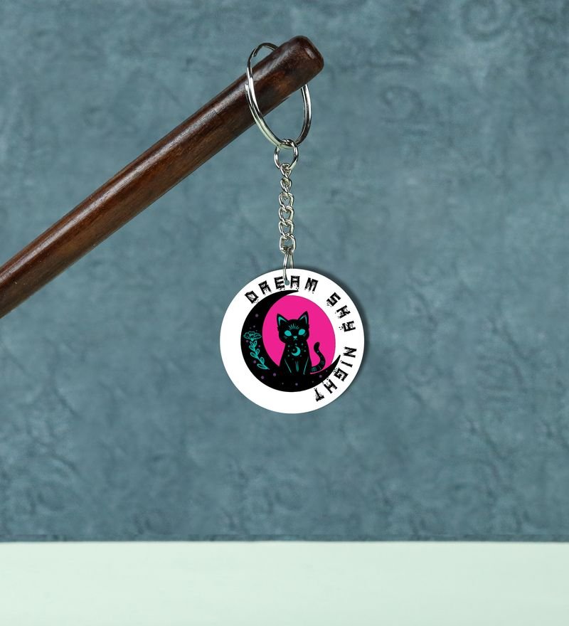 Mystical Kitty Night Theme Printed Round Keychain Pack of 2
