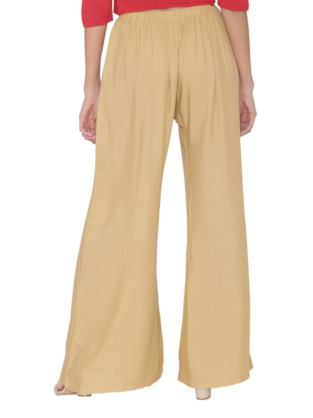 N-Gal Rayon Women's Wide Leg Elastic Waist Band Breathable Plain Palazzo Pant_Beige