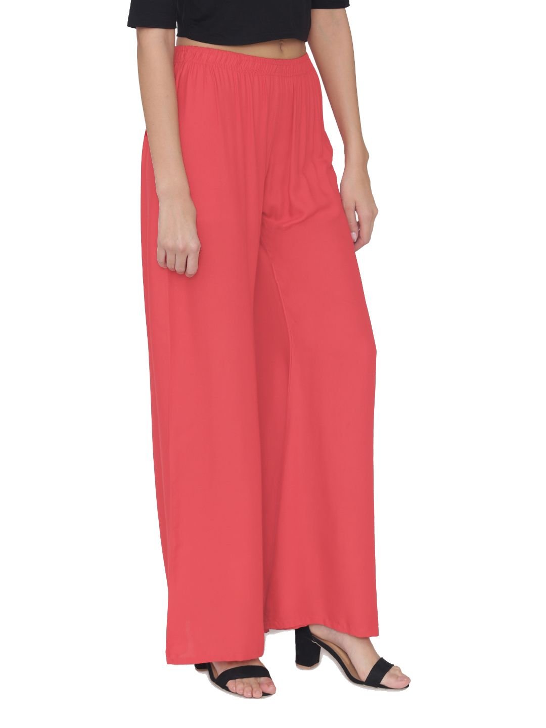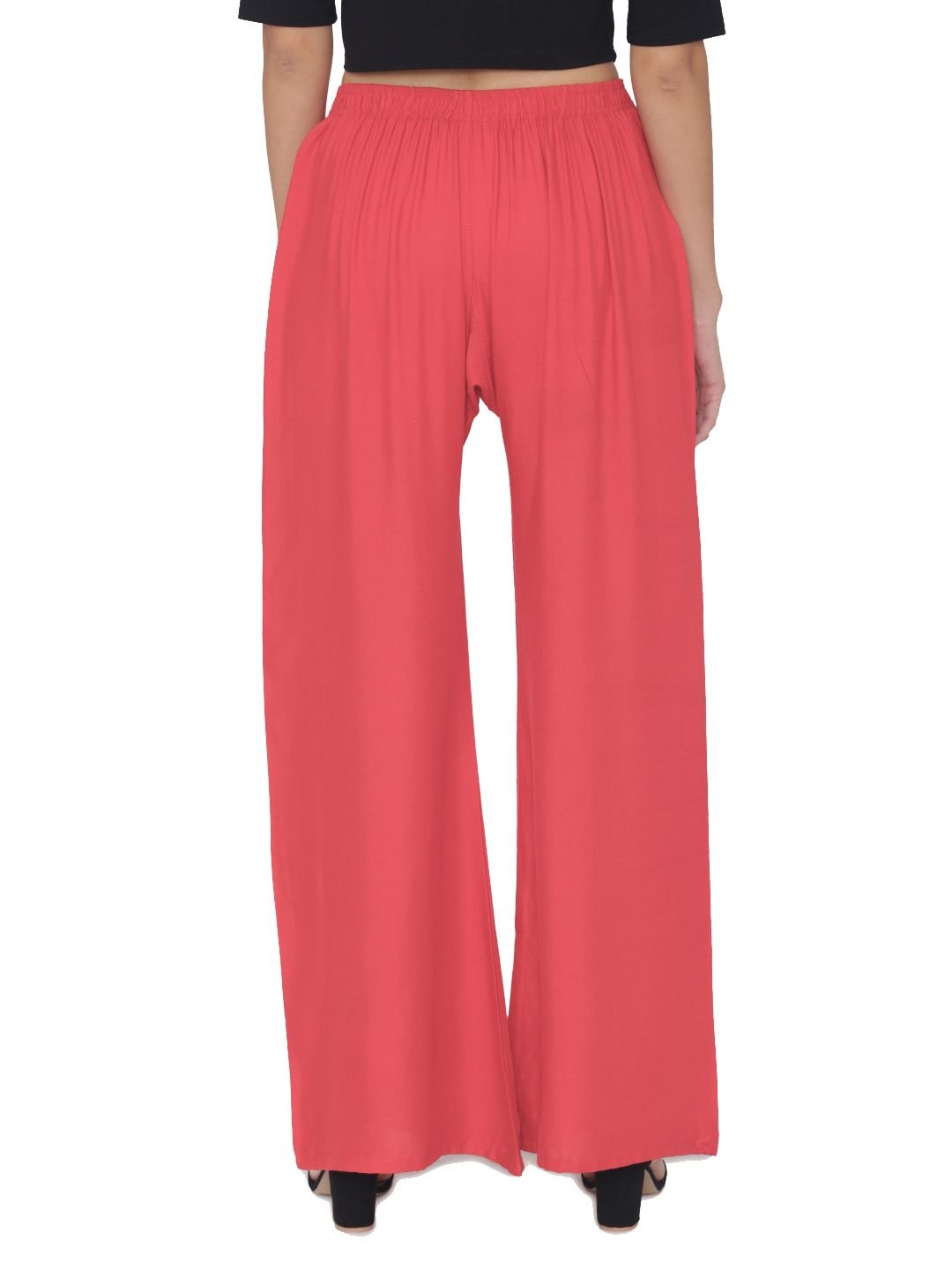 N-Gal Rayon Women's Wide Leg Elastic Waist Band Breathable Plain Palazzo Pant_Coral