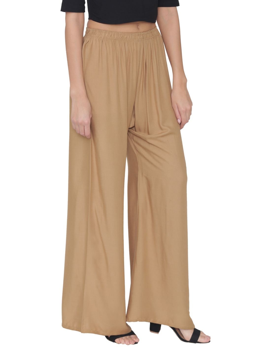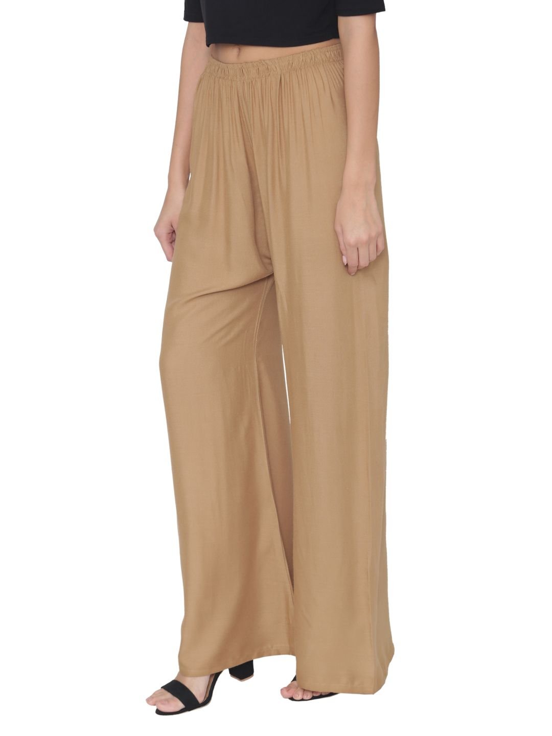 N-Gal Rayon Women's Wide Leg Elastic Waist Band Breathable Plain Palazzo Pant_Golden