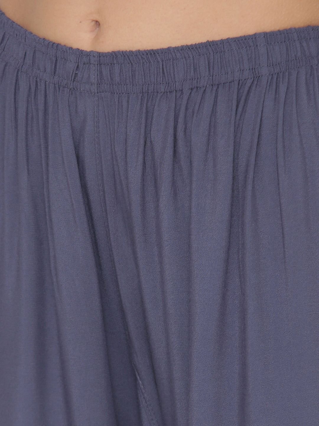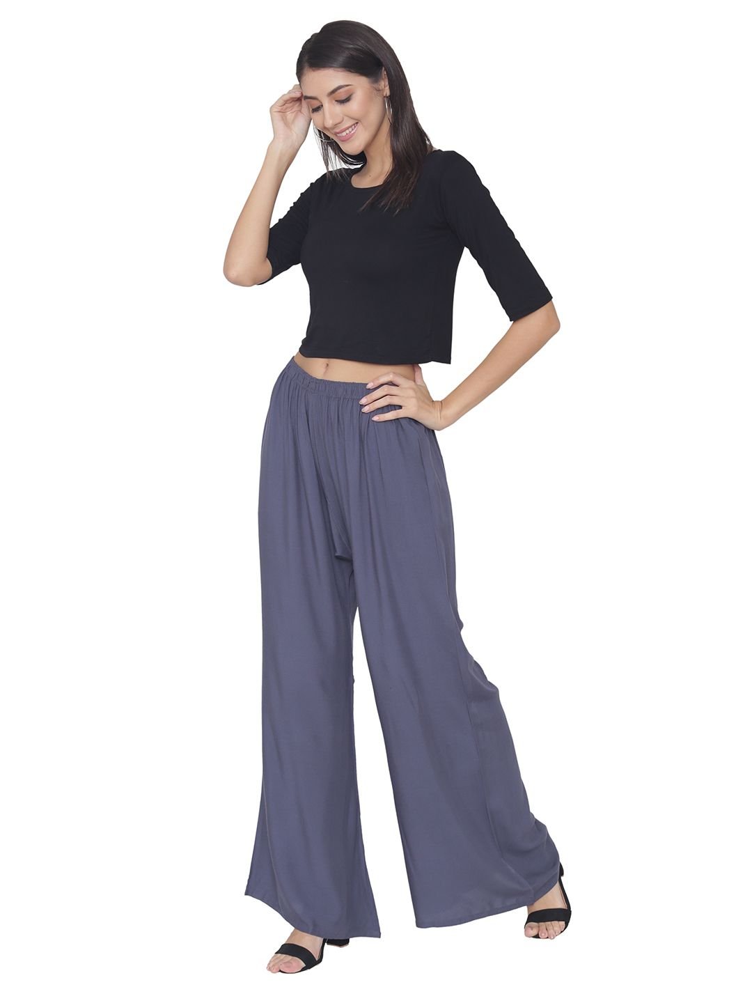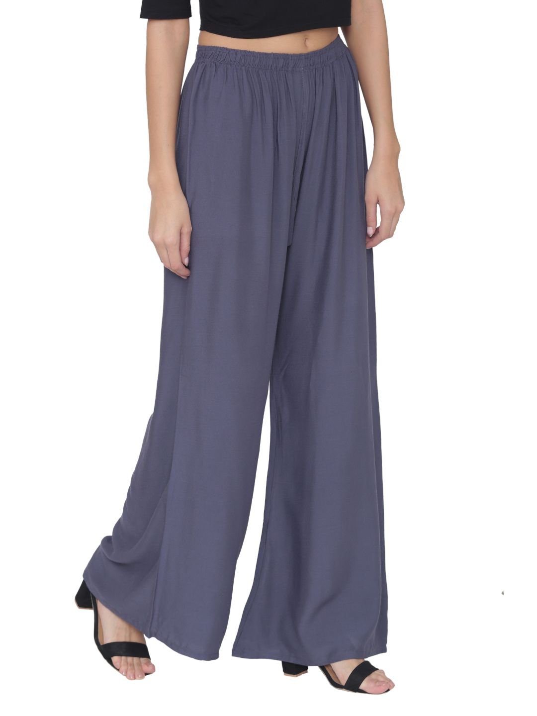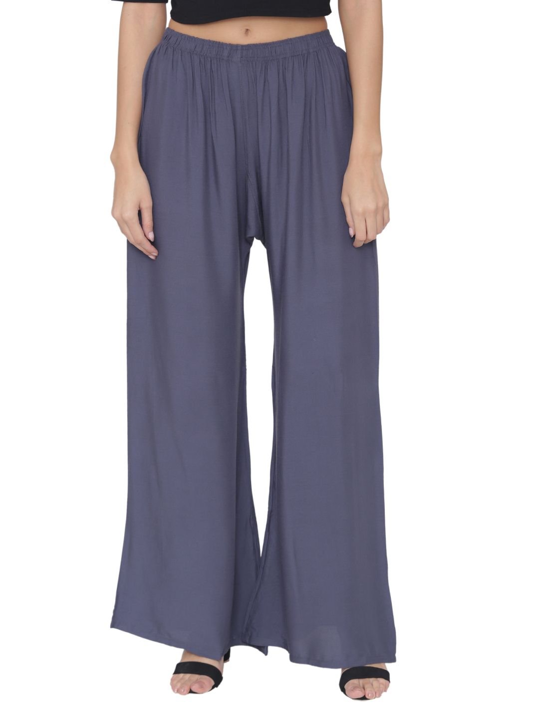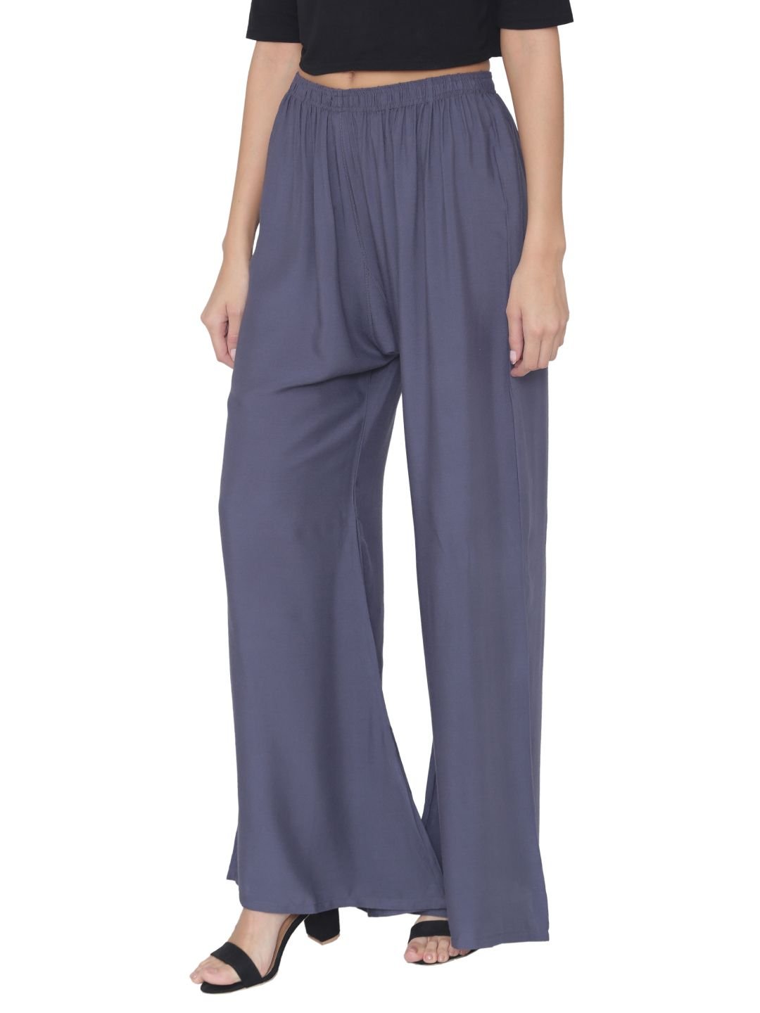 N-Gal Rayon Women's Wide Leg Elastic Waist Band Breathable Plain Palazzo Pant_Grey