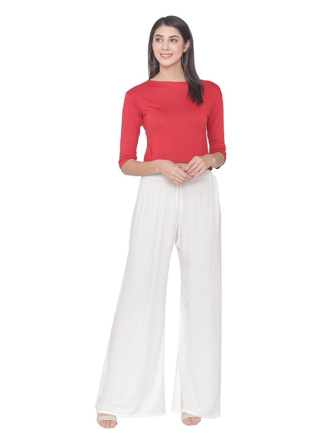 N-Gal Rayon Women's Wide Leg Elastic Waist Band Breathable Plain Palazzo Pant_White