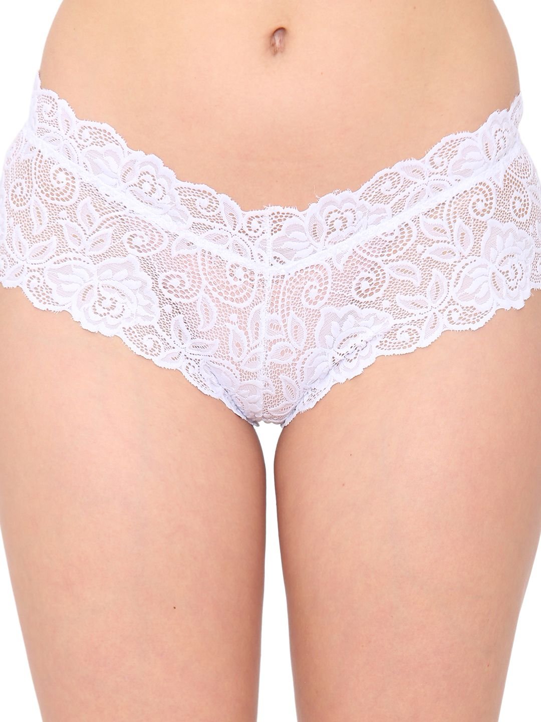 N-Gal Women's Cheeky Lace Mid Waist Floral Underwear Lingerie Brief Panty _White