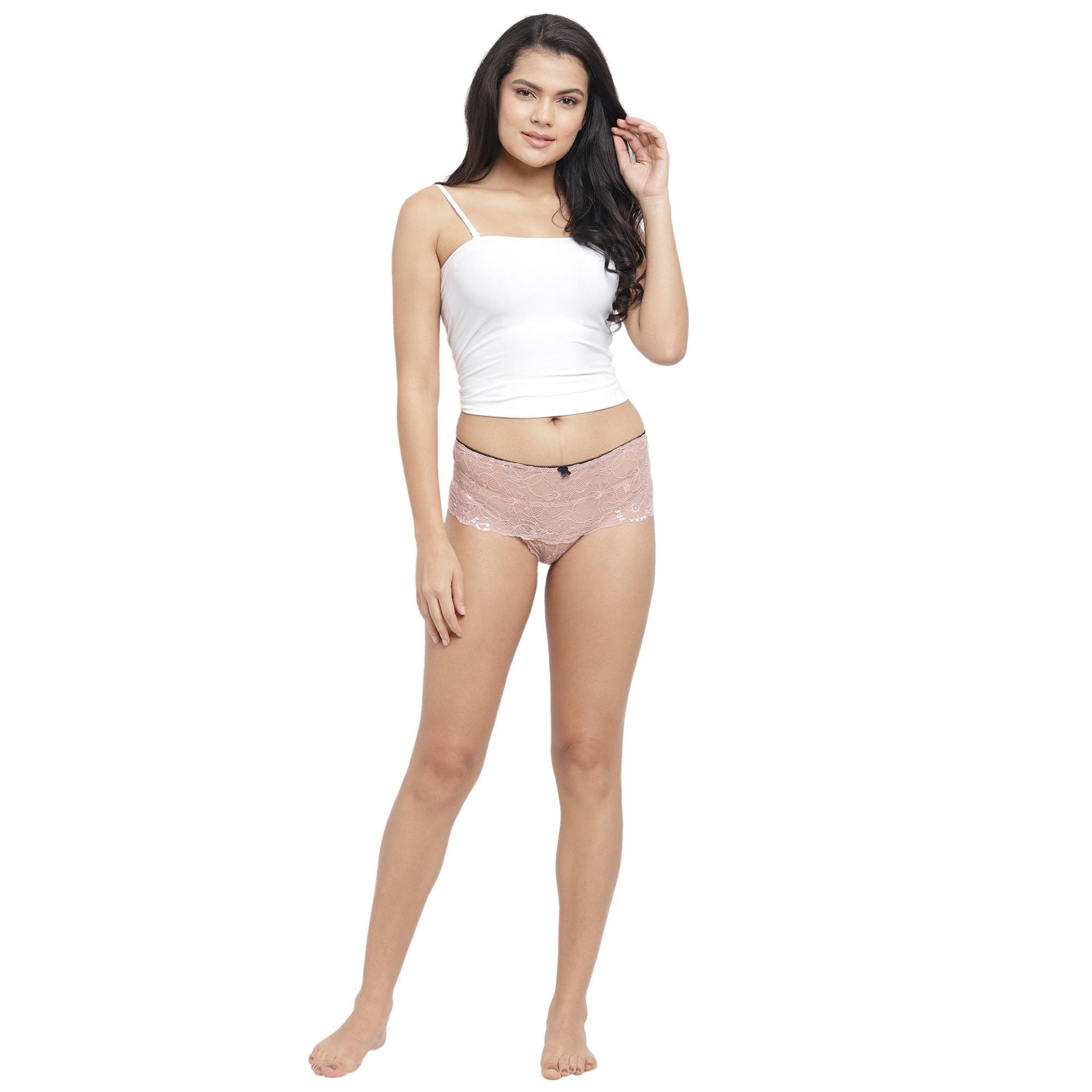 N-Gal Women's Erotic Lace See Through Mid Waist Underwear Lingerie Knickers Brief Panty_Beige