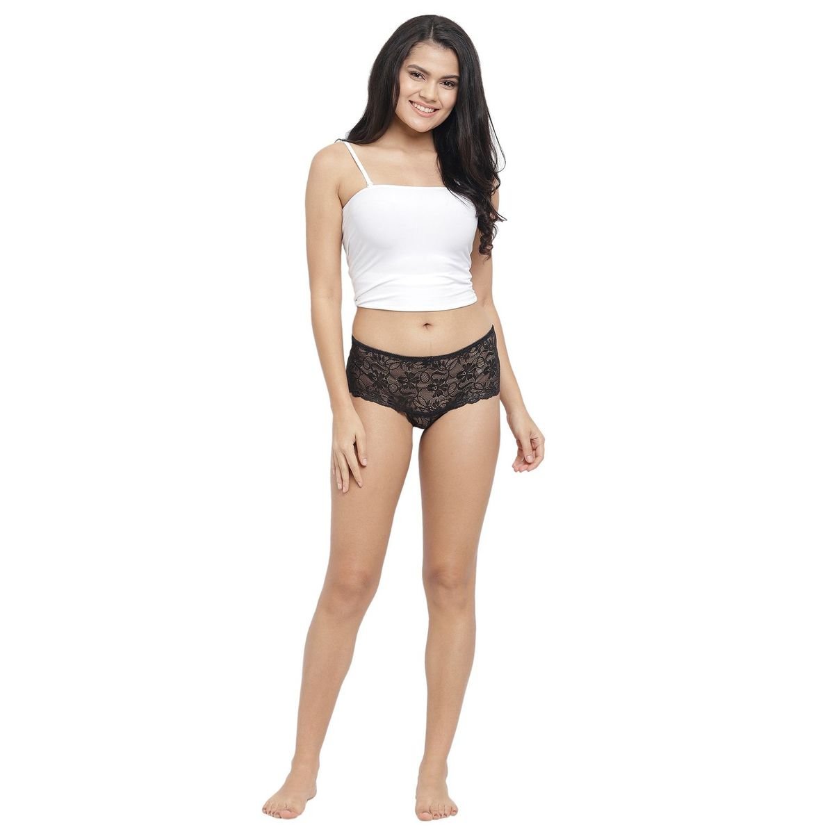 N-Gal Women's Erotic Lace See Through Mid Waist Underwear Lingerie Knickers Brief Panty_Black
