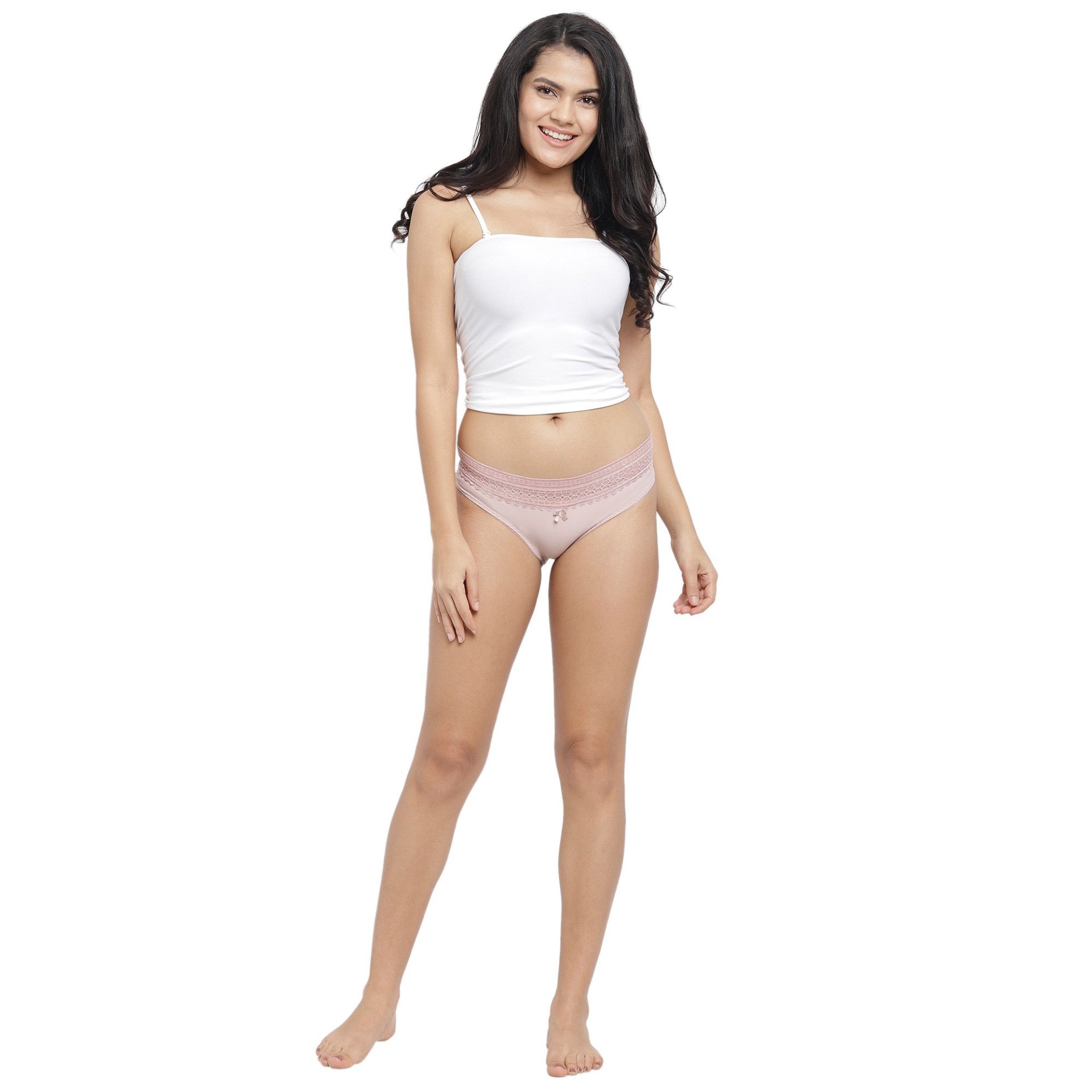 N-Gal Women's Floral Lace Edge Mid Waist Underwear Lingerie Brief Panty_Beige