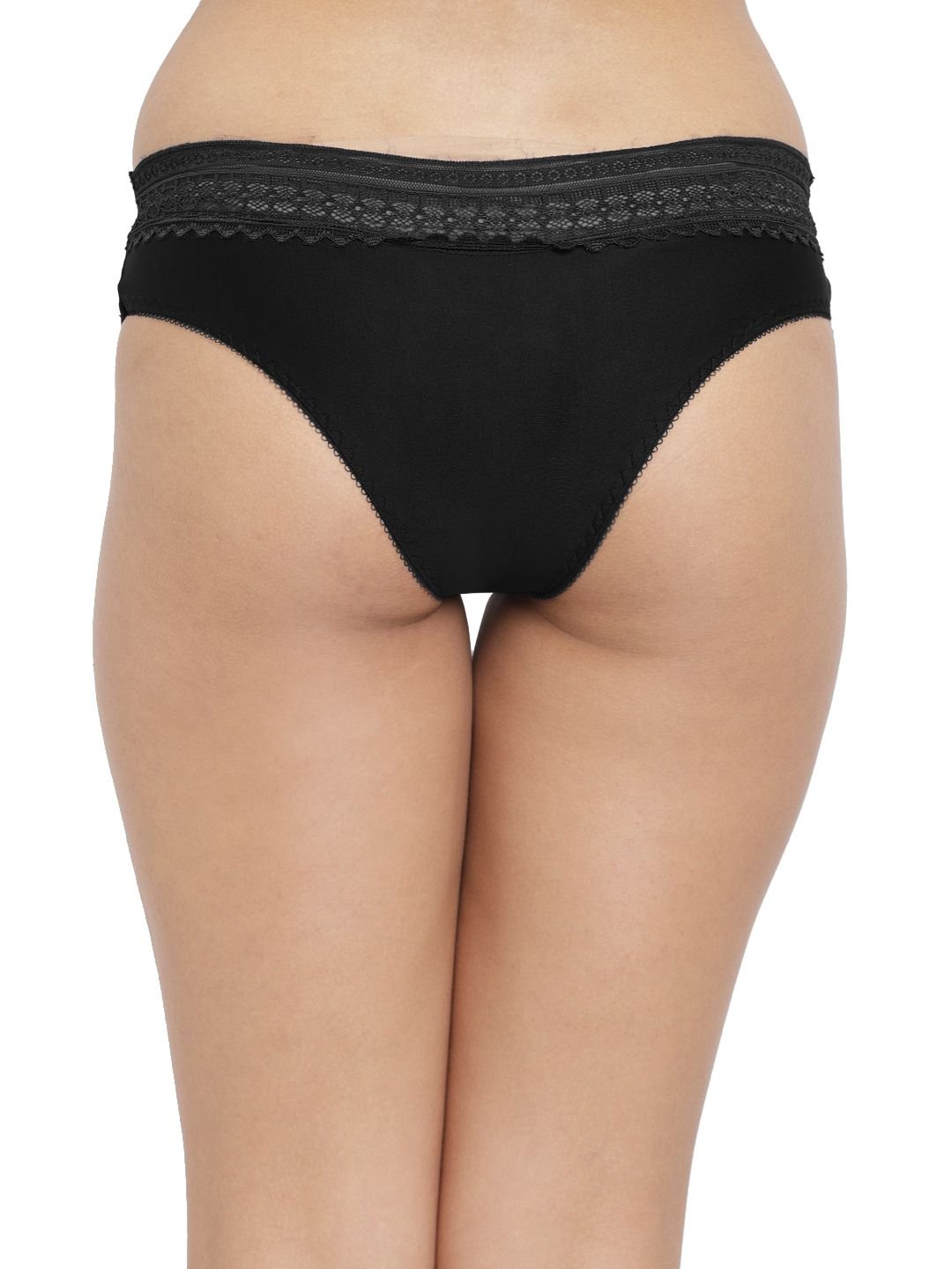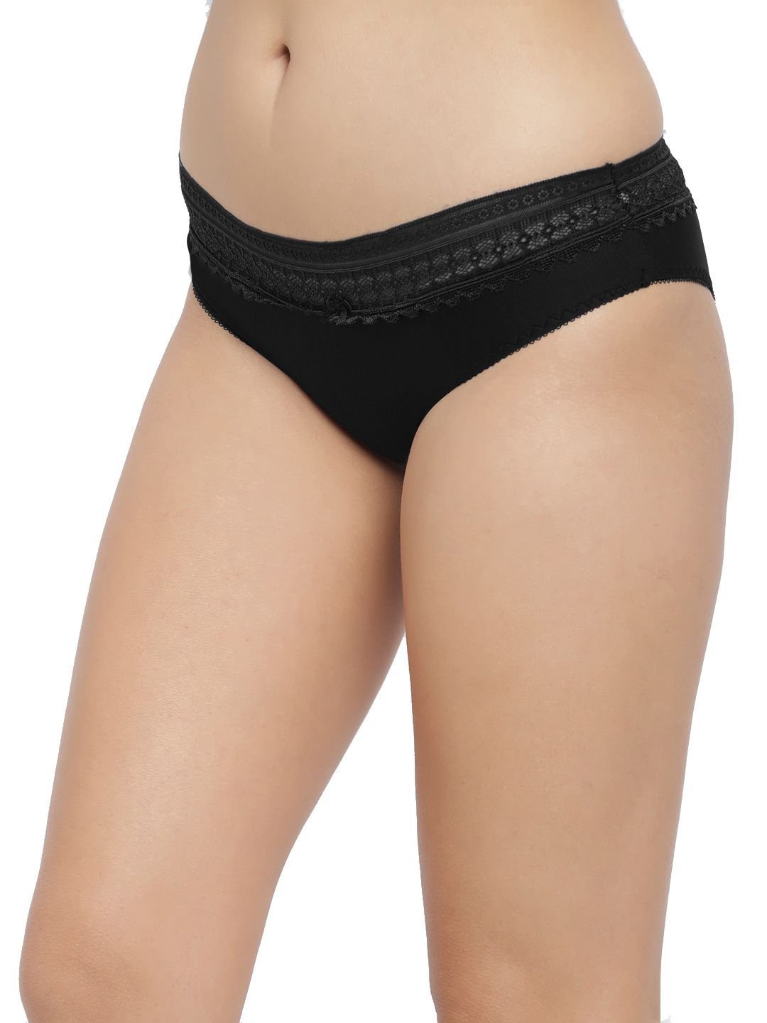 N-Gal Women's Floral Lace Edge Mid Waist Underwear Lingerie Brief Panty_Black
