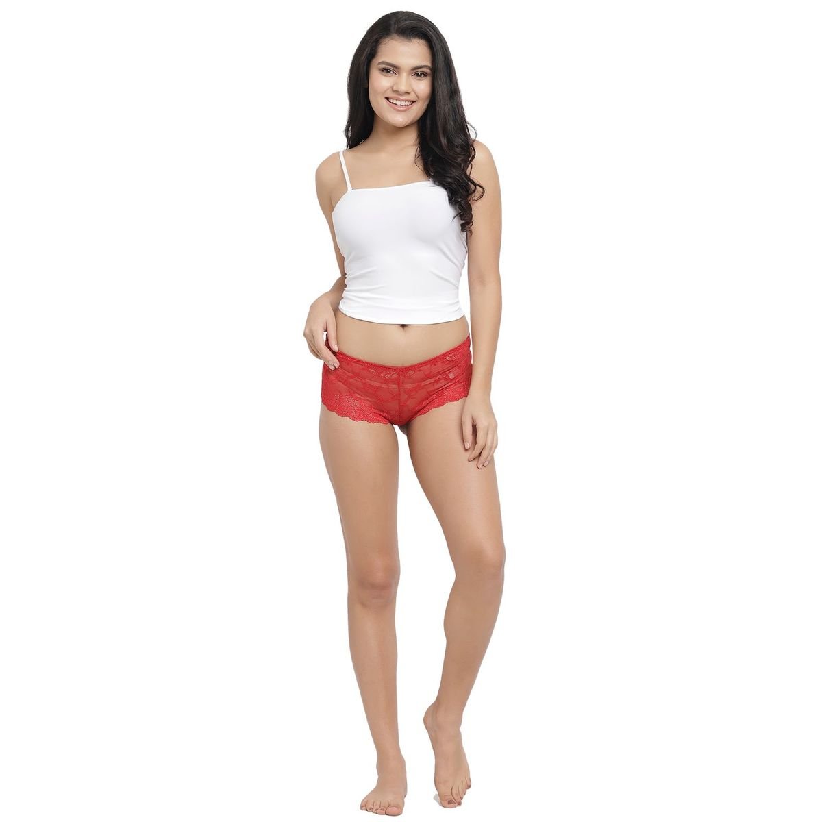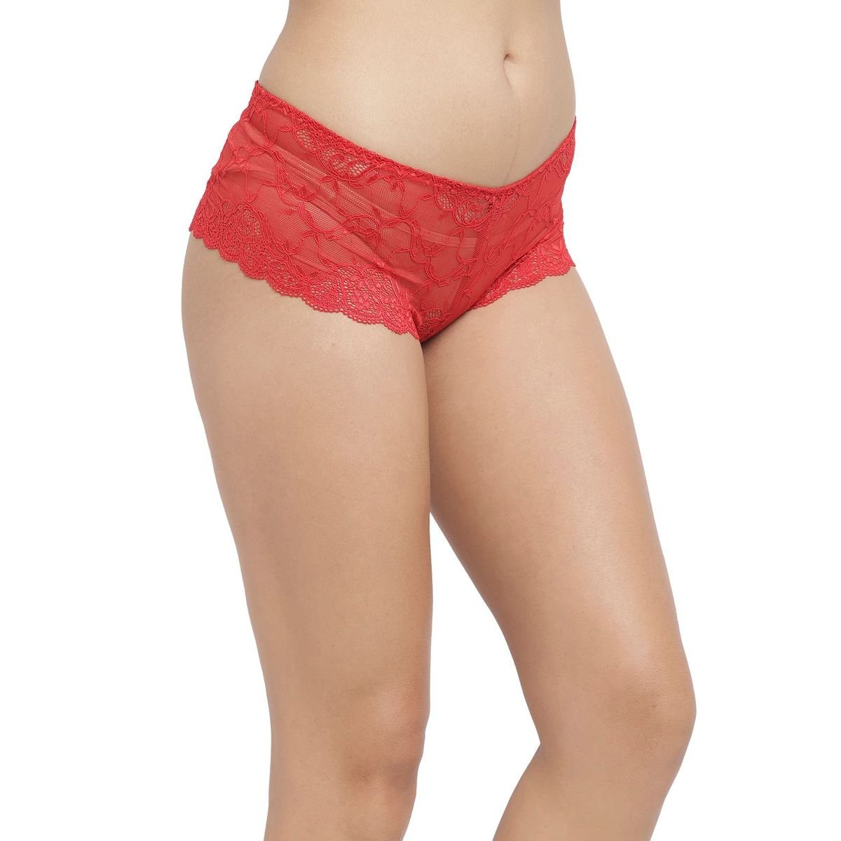 N-Gal Women's Lace See Through Mid Waist Underwear Lingerie Knickers Brief Panty_Red