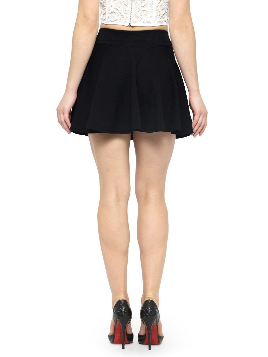 N-Gal Women's Polyester Lycra High Waist Flared Knit Skater Short Mini Skirt _Black