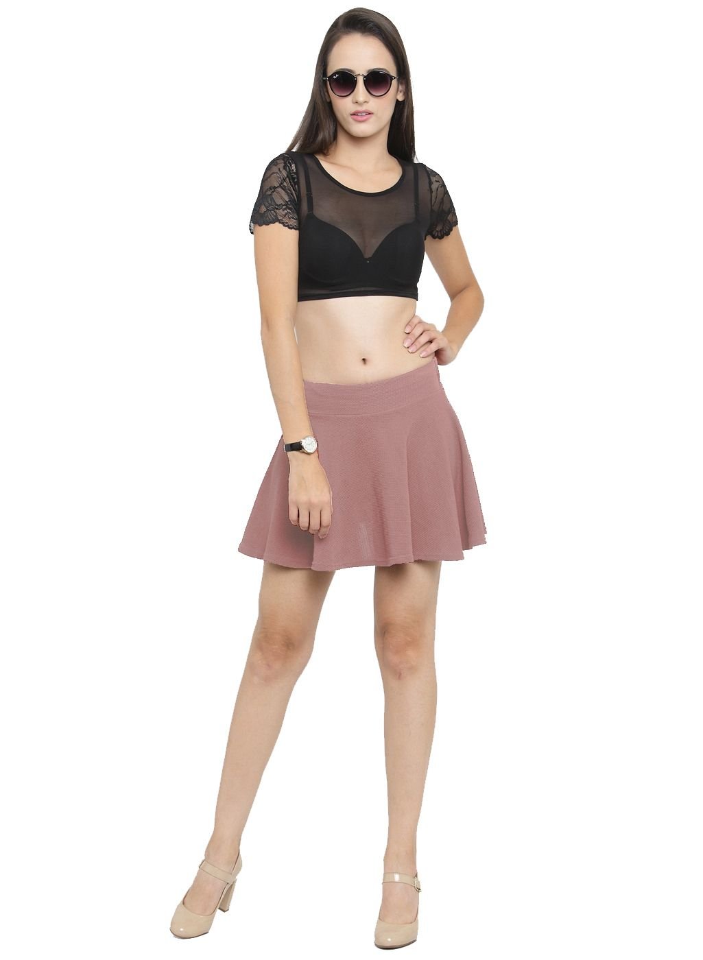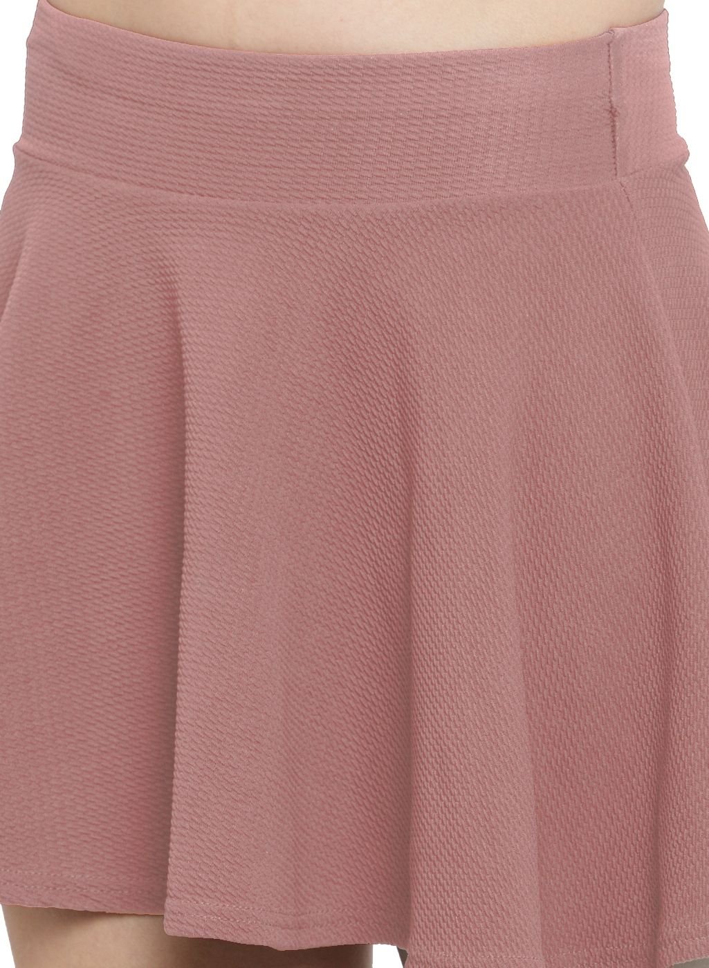 N-Gal Women's Polyester Lycra High Waist Flared Knit Skater Short Mini Skirt _Salmon