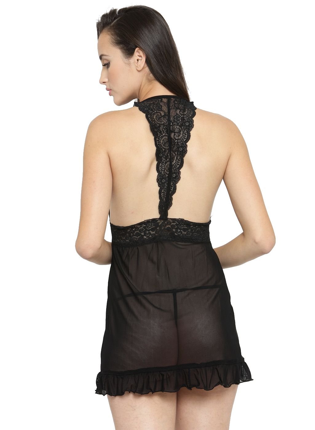 This sensous Chemise will make you look gorgeous.Look stylish in those special moments wearing this black coloured nightwear from N-Gal Brand.