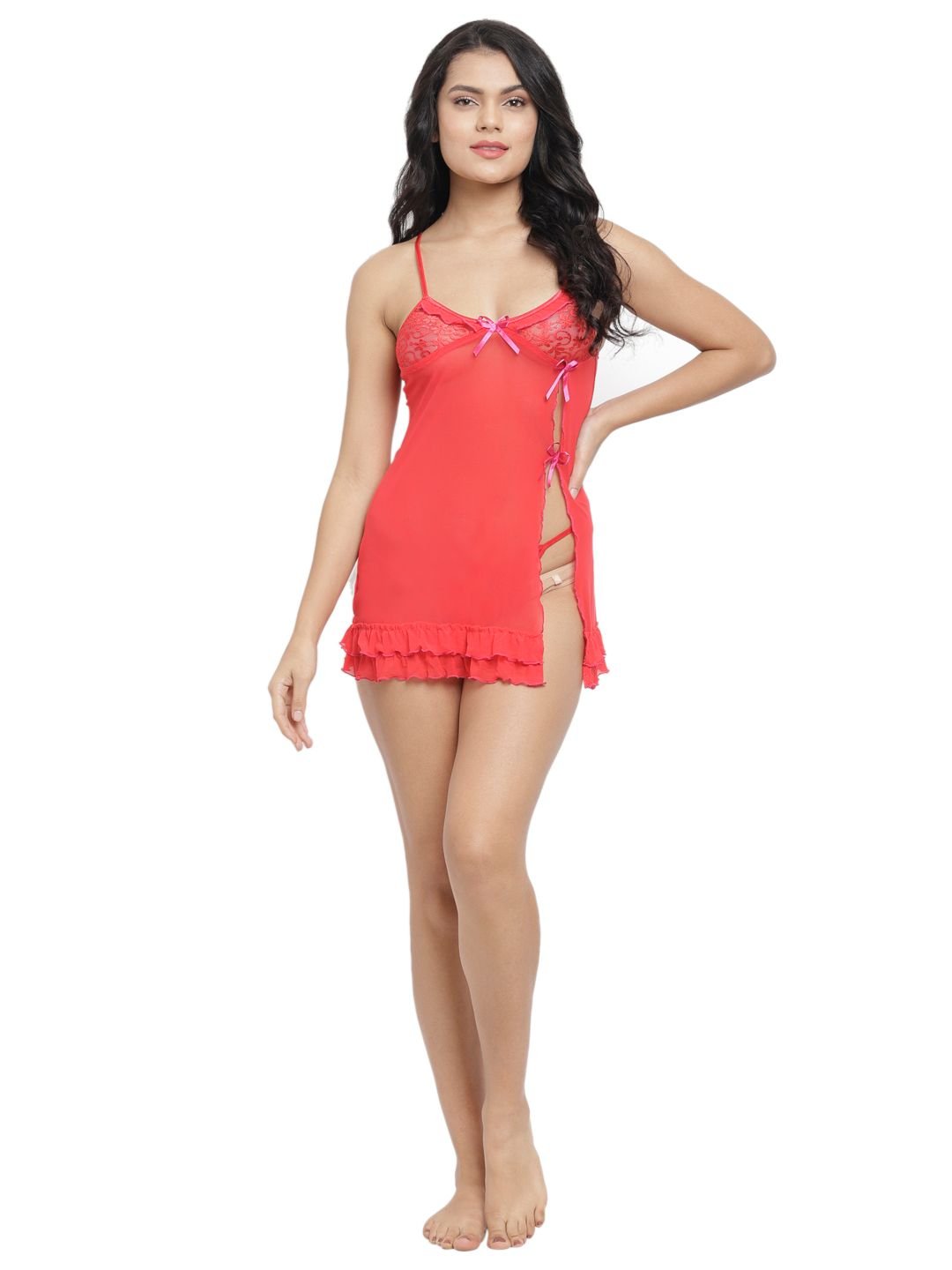 N-gal present naughty and sheer babydoll dress. The night wear is made out of premium mesh fabric which feels soft on skin.