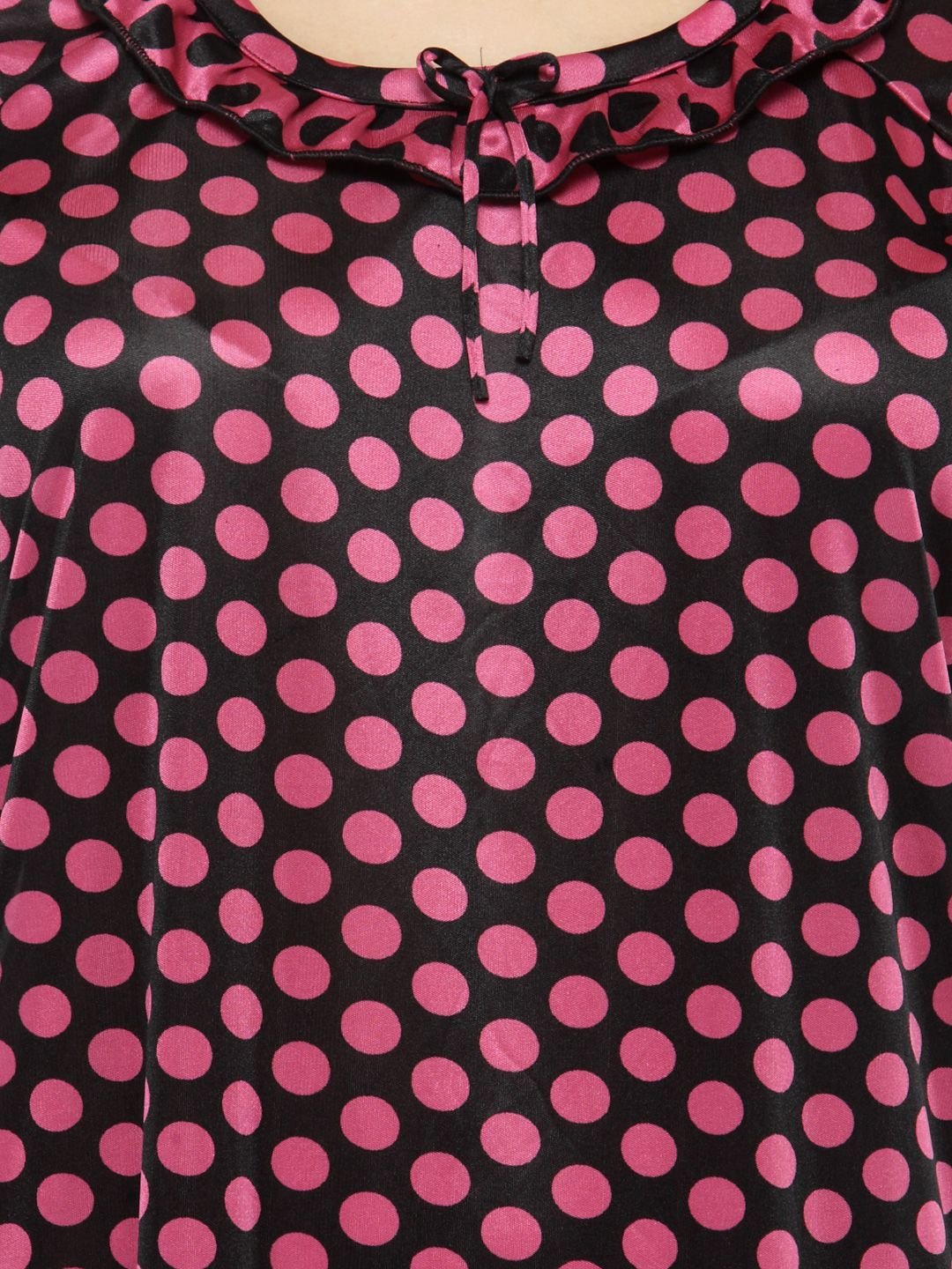 N-Gal Women's Satin Half Sleeves Polka Dot Nighty Night Dress Nightwear_Maroon_S