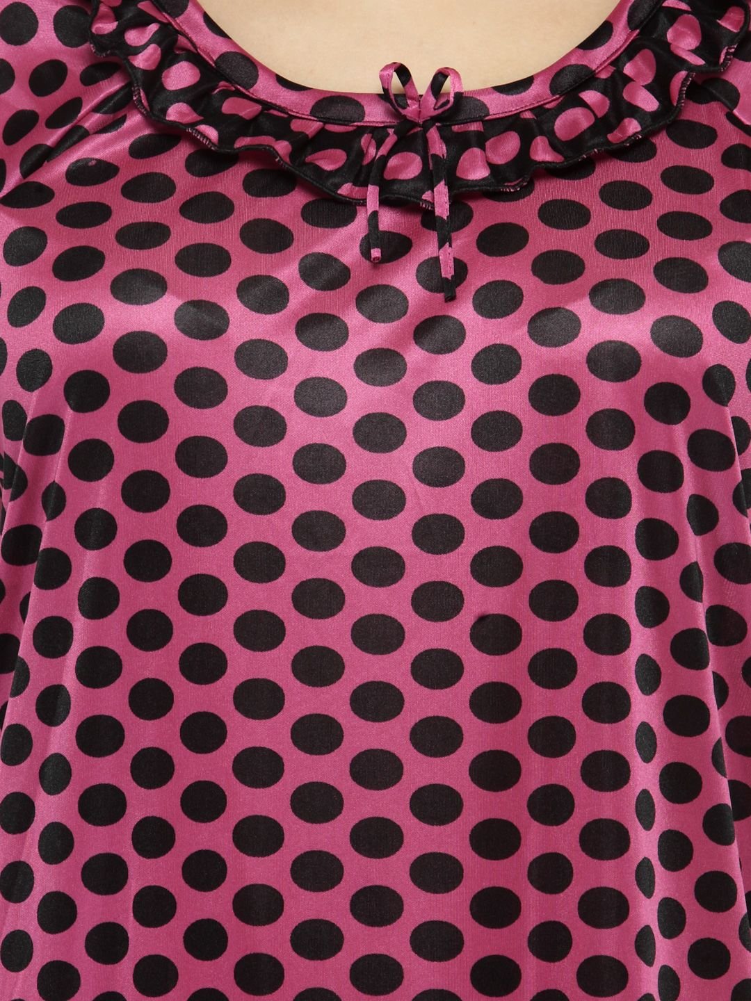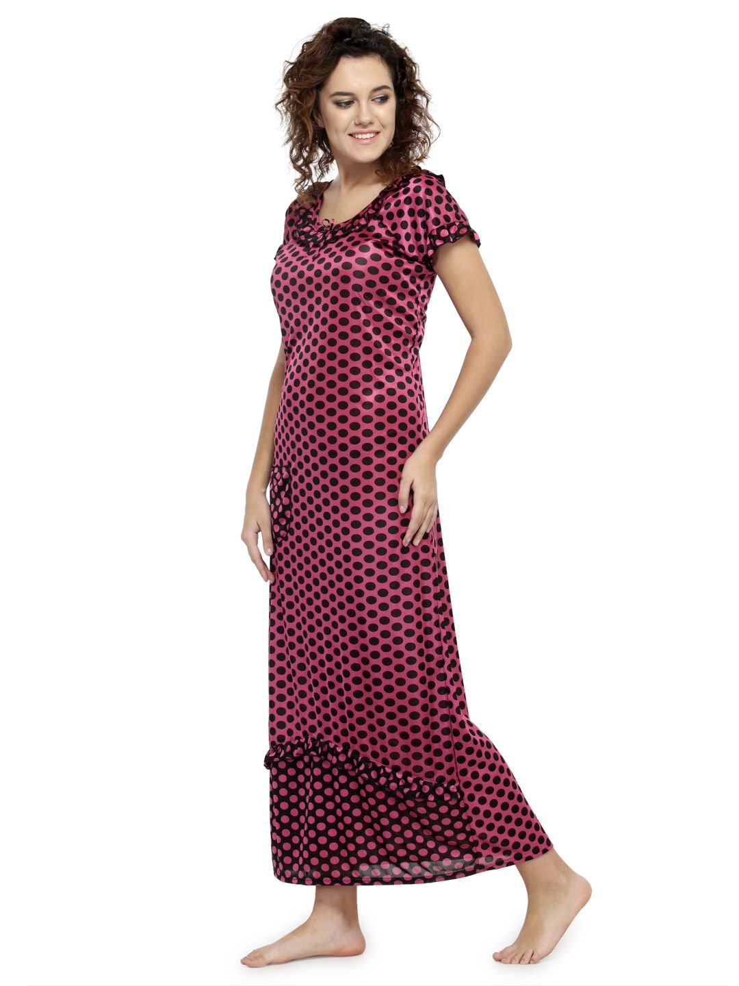 Designed to keep you comfortable while sleeping, this night dress is a must-have. With short sleeves and a soft material, it is sure to become your choicest. This Satin nighty has a frilled scoop neckline with laced details. This Satin nighty is a combination of comfort and luxury . This nightwear is an ideal choice for you, especially if you seek relaxation at night.