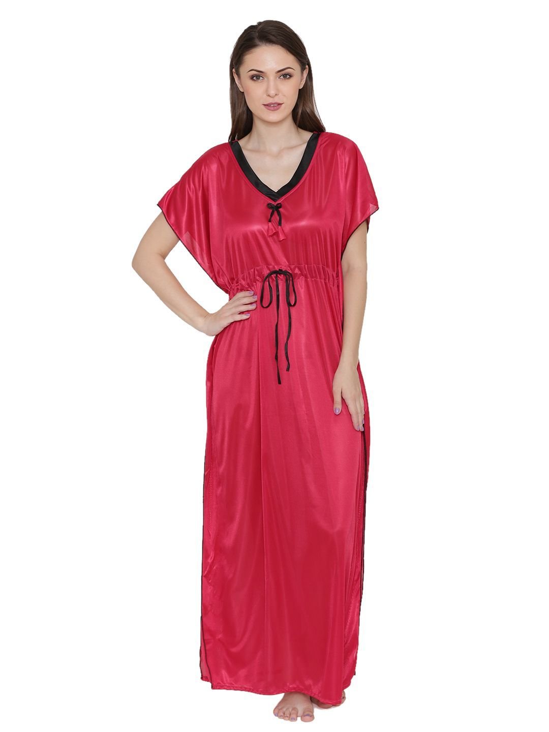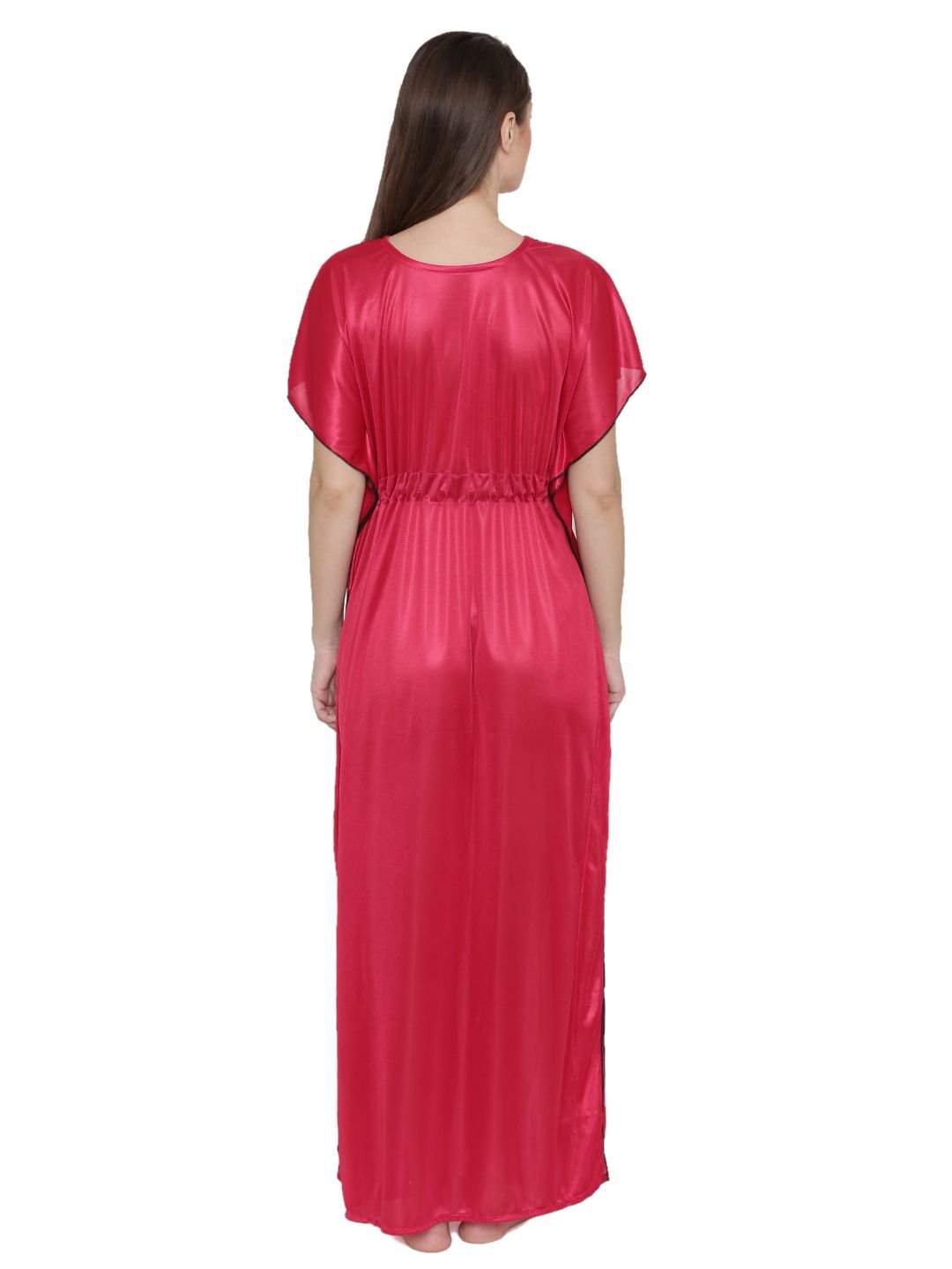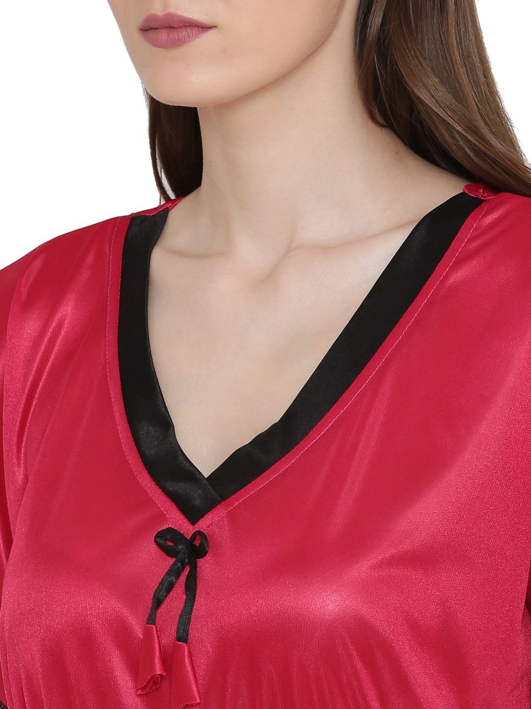 N-Gal Women's Satin Nighty Night Dress Nightwear with G,String_Red