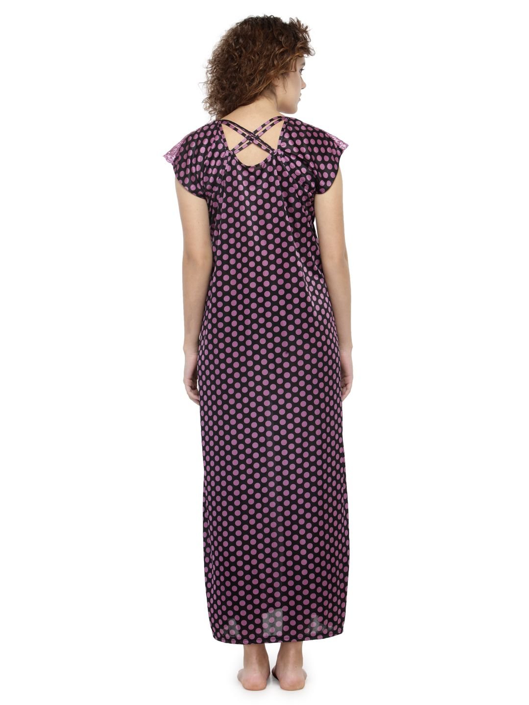 N-Gal Women's Satin Polka Dot Print Short Lace Sleeves Nighty Night Dress Nightwear_Purple