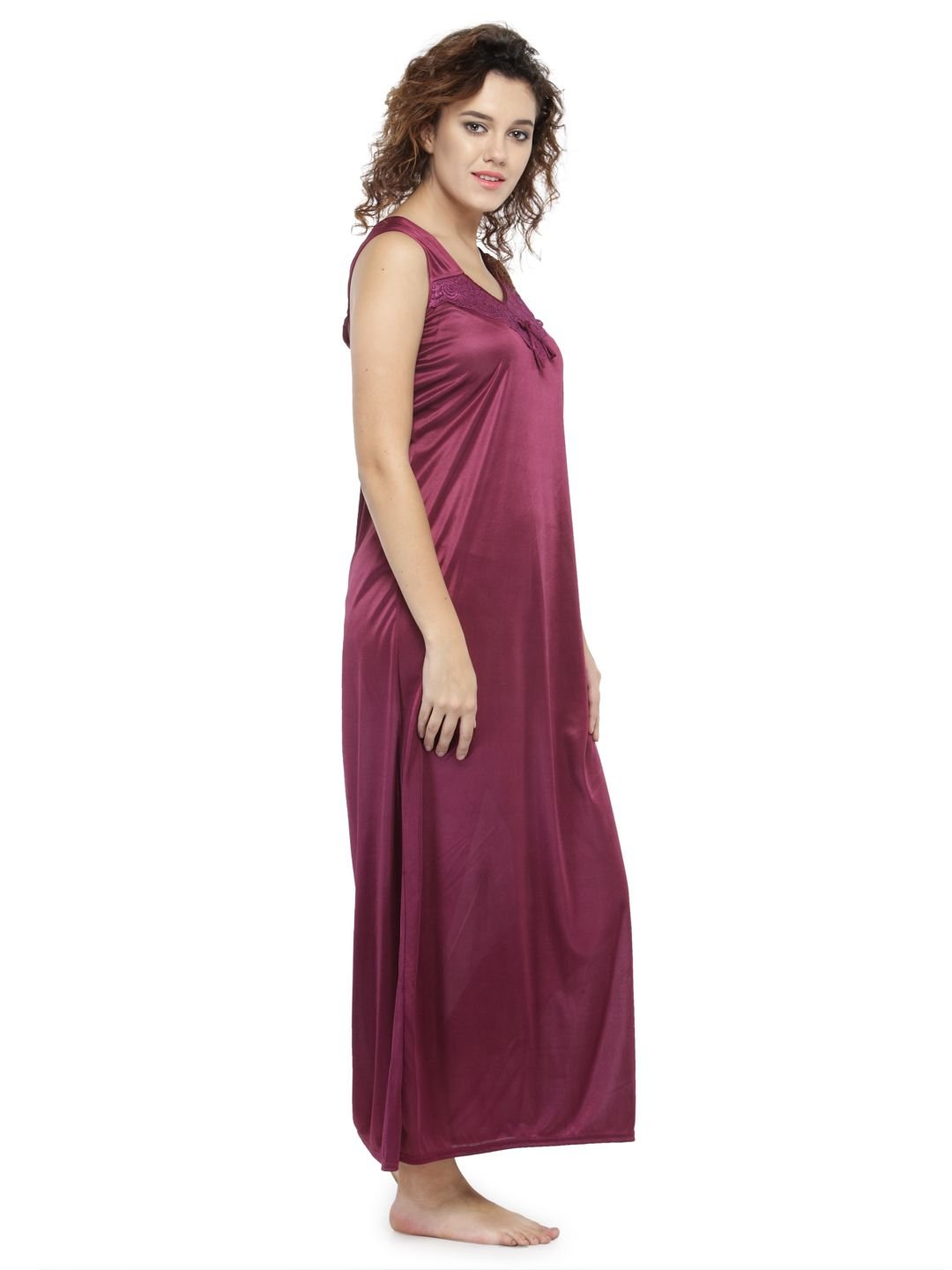 Designed to keep you comfortable while sleeping, this night dress is a must-have. With short sleeves and a soft material, it is sure to become your choicest.his Satin nighty has a frilled scoop neckline with laced details. This Satin nighty is a combination of comfort and luxury . This nightwear is an ideal choice for you, especially if you seek relaxation at night.