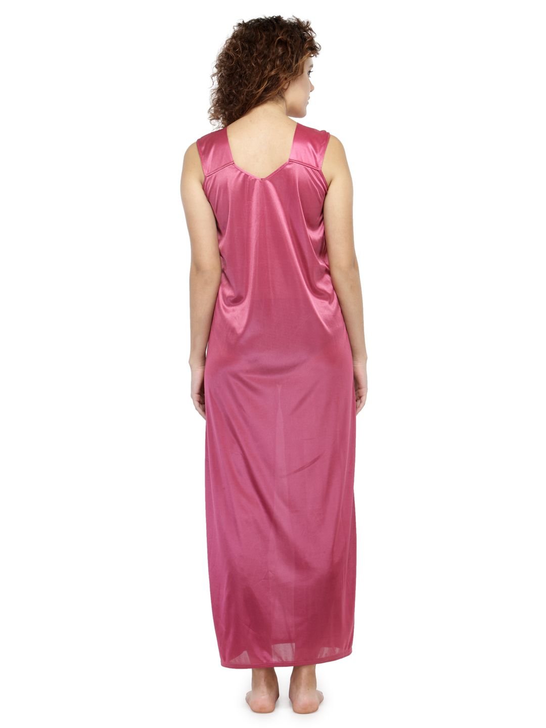 N-Gal Women's Satin Solid Wide Strap Satin Nighty Night Dress Nightwear_Pink