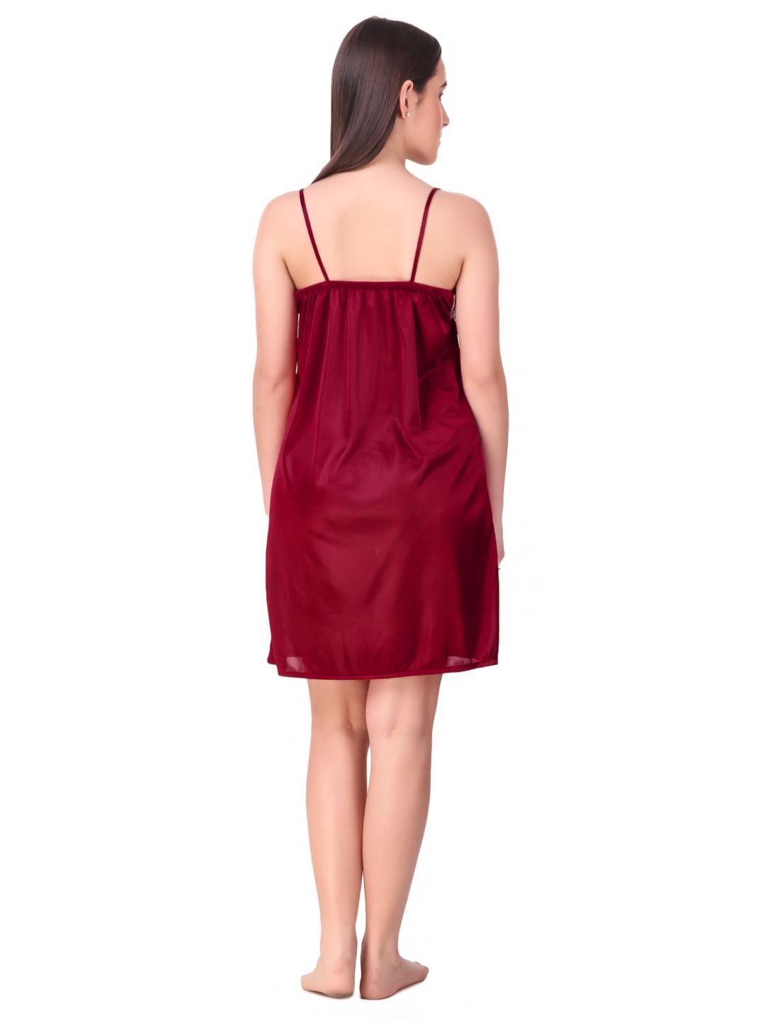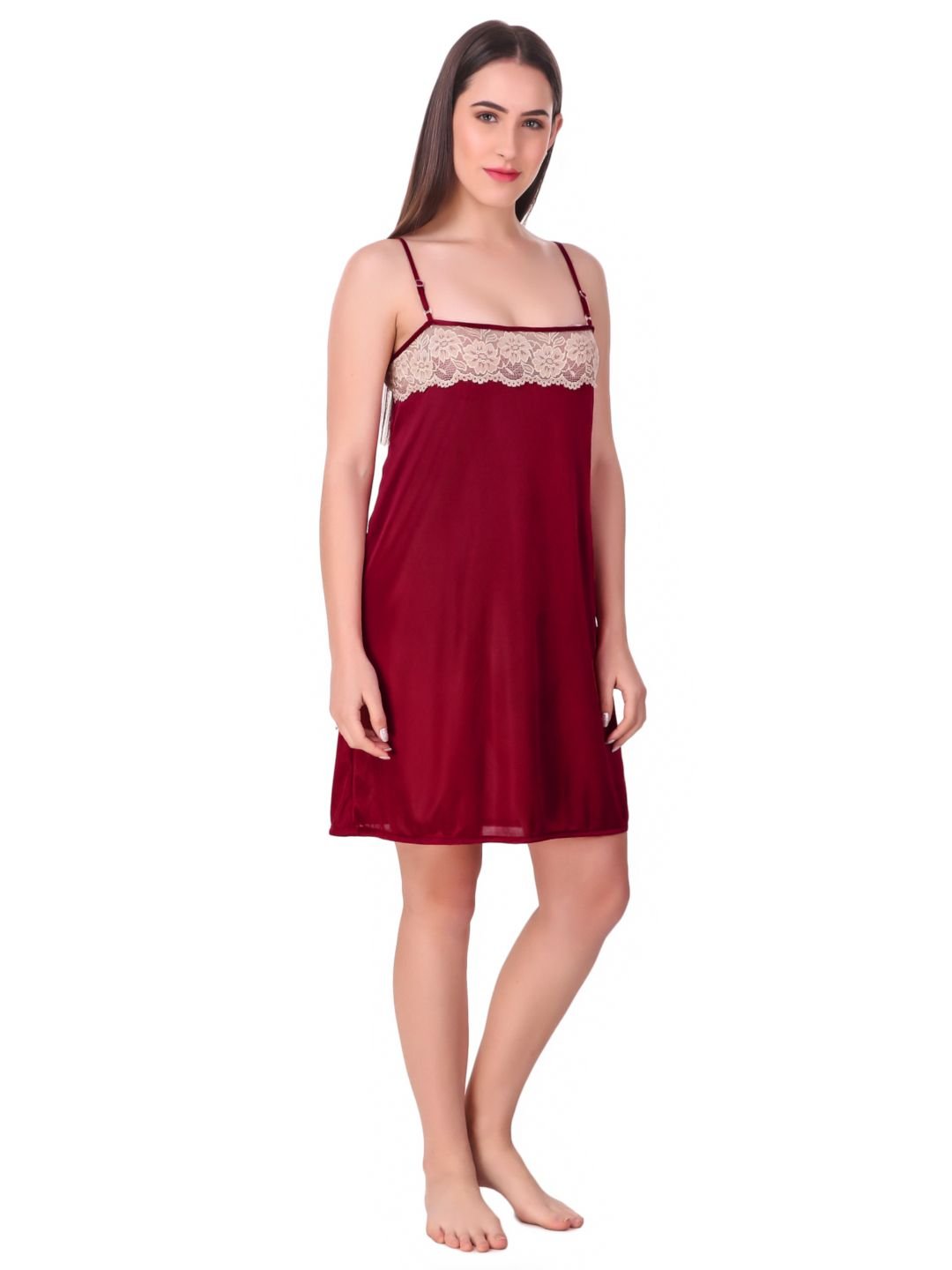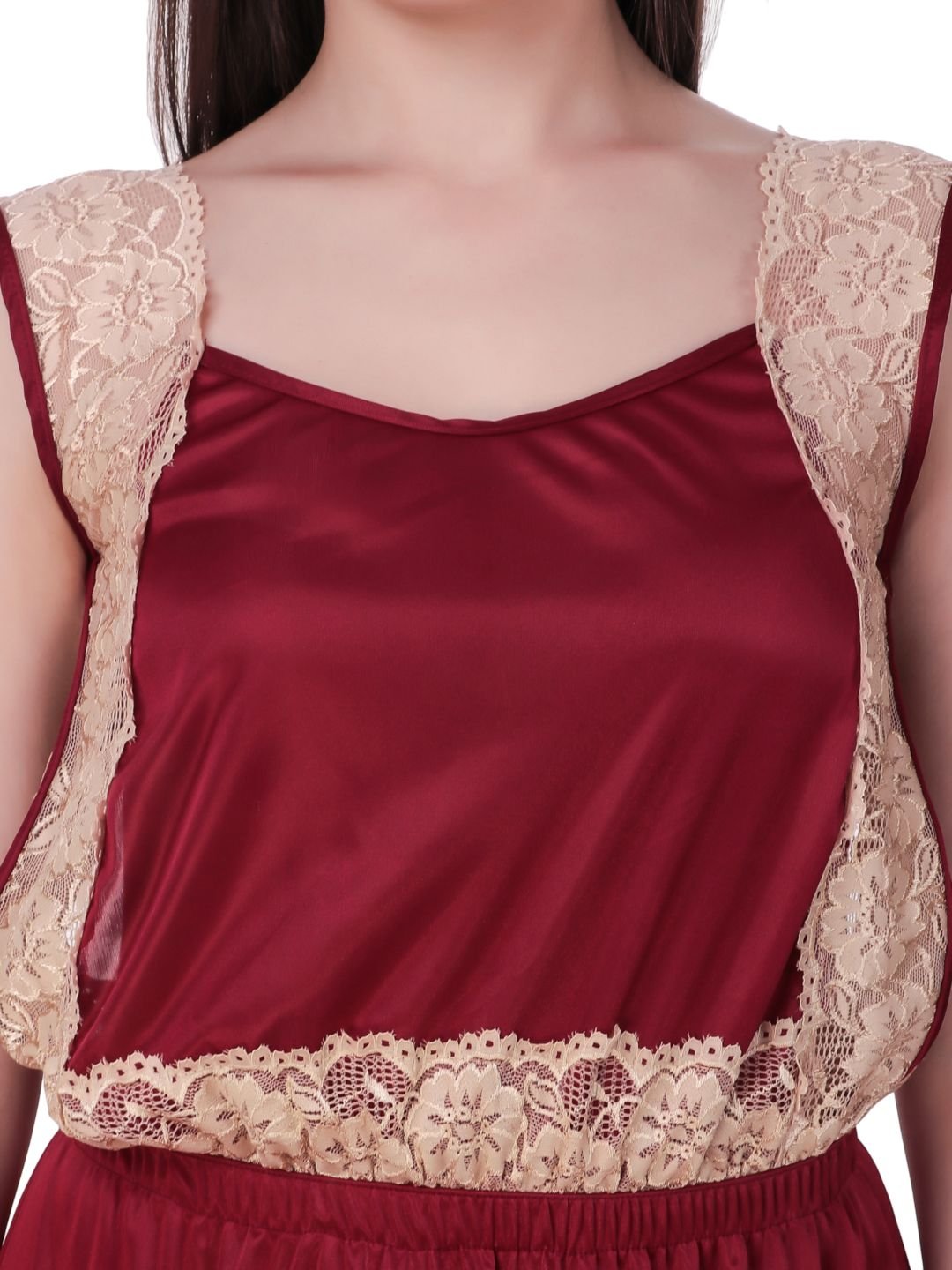 N-Gal Women's Satin Spandex Royal Lace Soft Nighty Lingerie Nightwear_Maroon