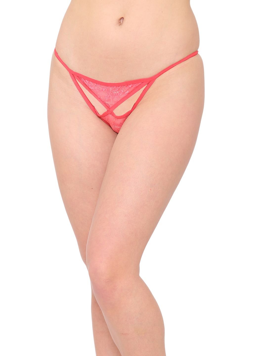 N-Gal Women's Sheer Lace Cut Out Adjustable Waist Band G-String Thong Panty_Pink