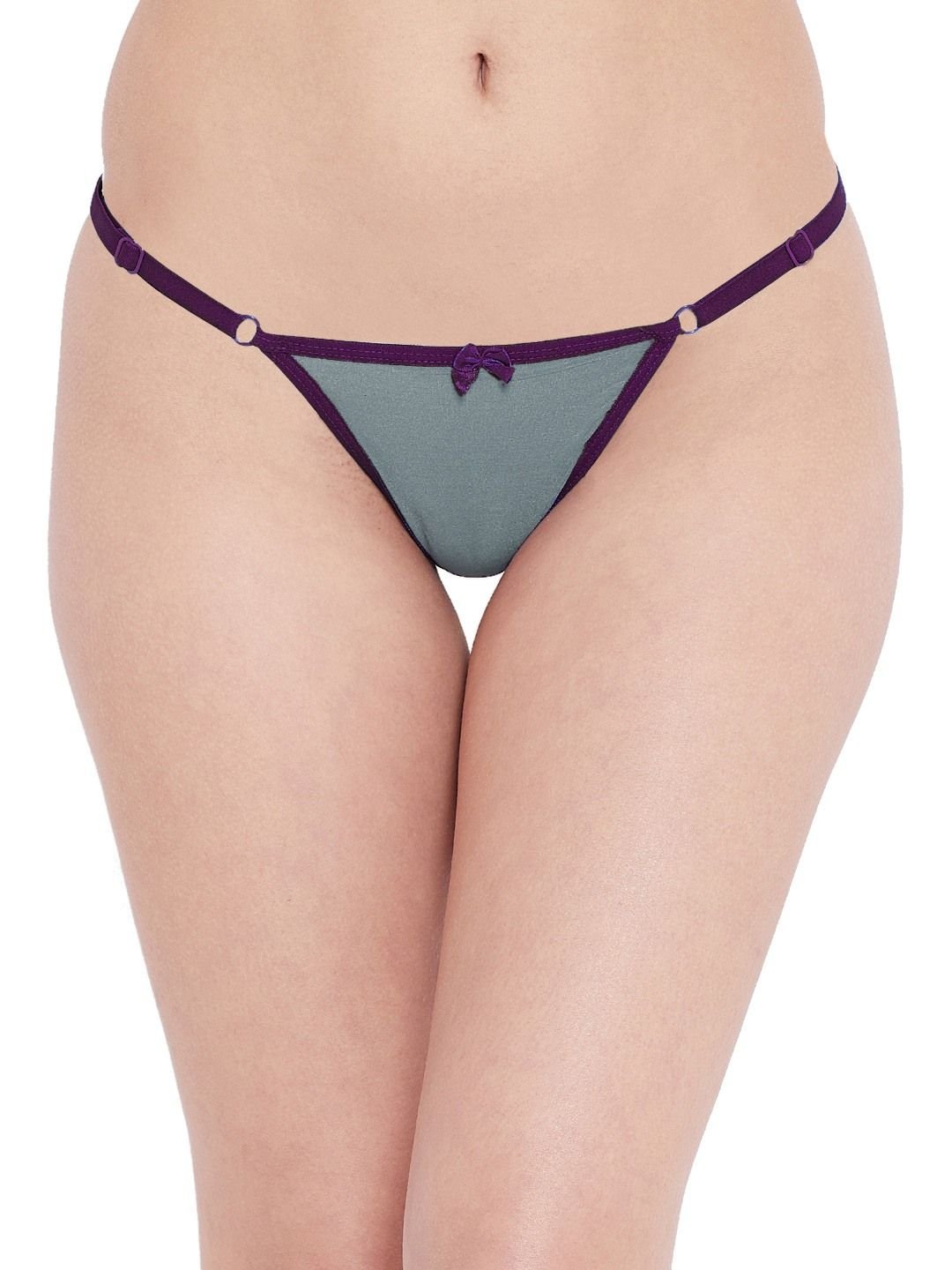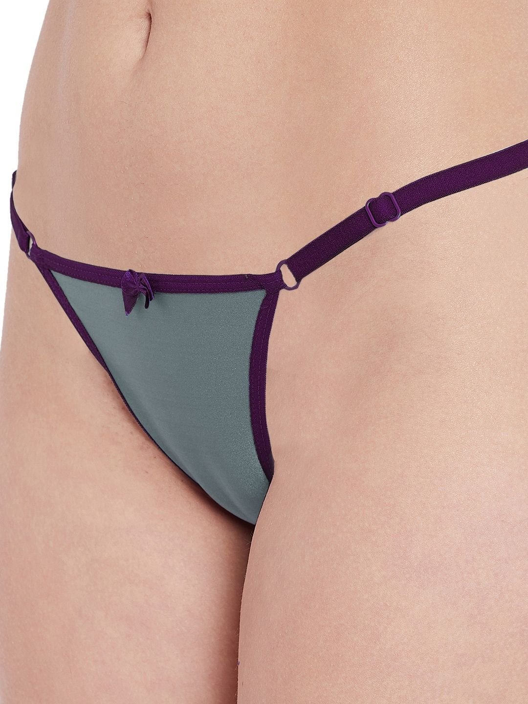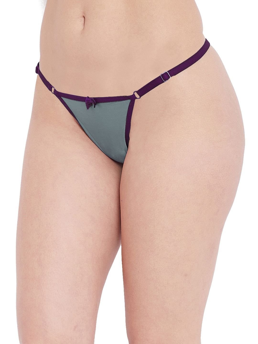 N-Gal Women's Sheer Lace Cut Out Adjustable Waist Band G-String Thong Panty_Purple
