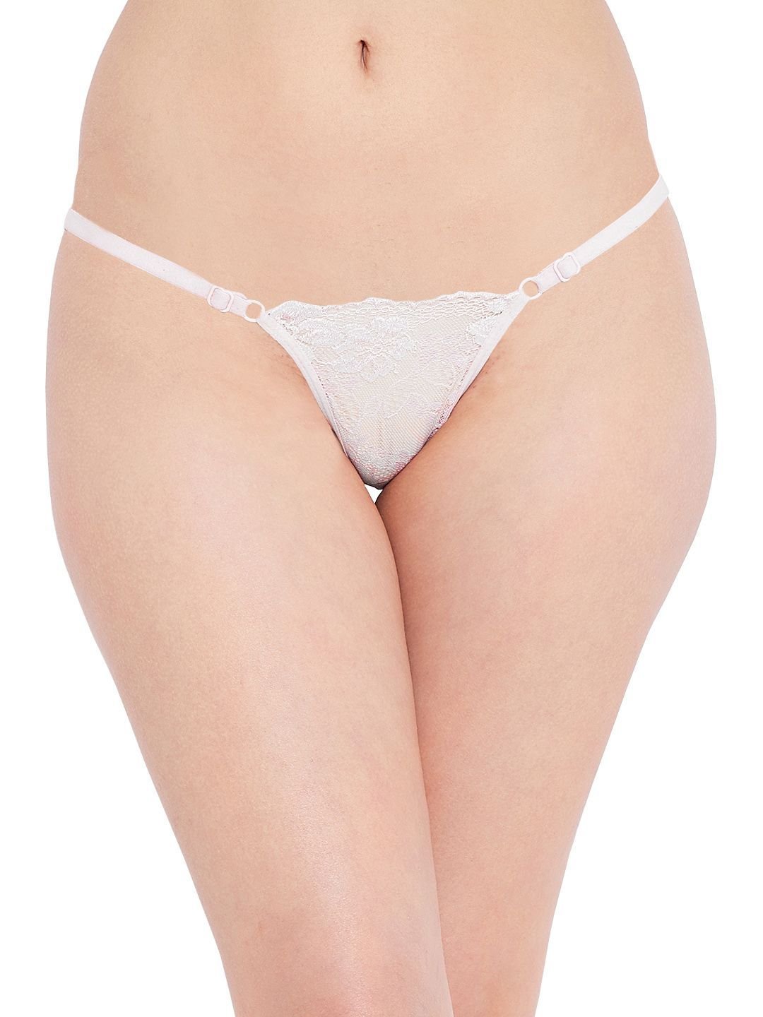 N-Gal Women's Sheer Lace Cut Out Adjustable Waist Band G-String Thong Panty_White