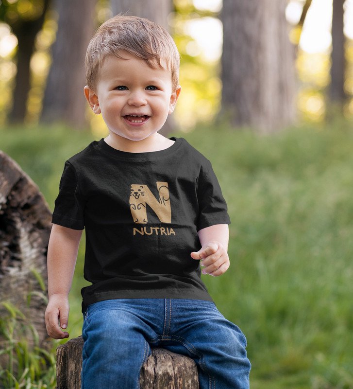Naughty Nutria, Boys Round Neck Blended Cotton Tshirt (black)