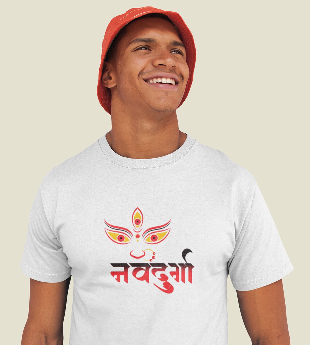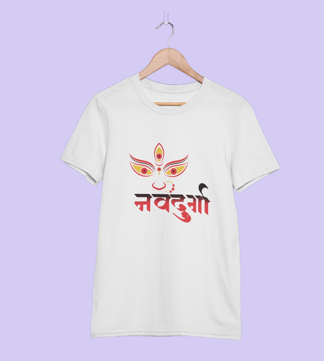 Navratri is a very auspicious festival for hindus. It takes place at the beginning of October and sometimes September. Enjoy the 9 days of festivities with full zeal and make yourself submerged in the love of Maa Durga. Navratri is also known as Durga Puja. And with this Tees, you can shine like a star during this festive season with our navratri themed cotton half sleeved Tshirts. You can pair our t-shirts with trousers and denim of your choice and make it a weekday smart casual or weekend wear. This is durable. This tshirt is smooth and soft which makes you comfortable to wear during all seasons. The printing in it is durable and odourless. It has five sizes, S,M,L,XL,XXL. The Tshirt colour is intact even after repeated washes. It can be kept in your wardrobe and hangers. Please avoid washing mashine to clean this Tee, it may affect the print. Hand wash only. We have brought you many navratri related designs printed on our different colour Tshirts to choose from. Grab it now.