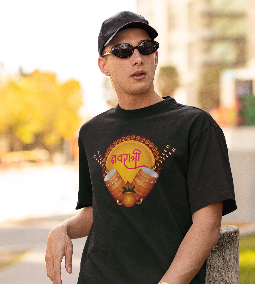 Navratri is a very auspicious festival for hindus. It takes place at the beginning of October and sometimes September. Enjoy the 9 days of festivities with full zeal and make yourself submerged in the love of Maa Durga. Navratri is also known as Durga Puja. And with this Tees, you can shine like a star during this festive season with our navratri themed cotton half sleeved Tshirts. You can pair our t-shirts with trousers and denim of your choice and make it a weekday smart casual or weekend wear. This is durable. This tshirt is smooth and soft which makes you comfortable to wear during all seasons. The printing in it is durable and odourless. It has five sizes, S,M,L,XL,XXL. The Tshirt colour is intact even after repeated washes. It can be kept in your wardrobe and hangers. Please avoid washing mashine to clean this Tee, it may affect the print. Hand wash only. We have brought you many navratri related designs printed on our different colour Tshirts to choose from. Grab it now.