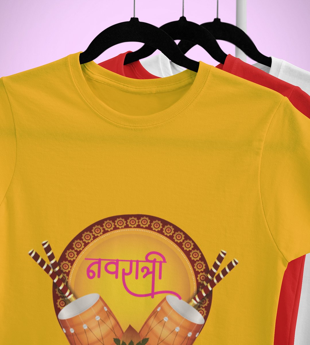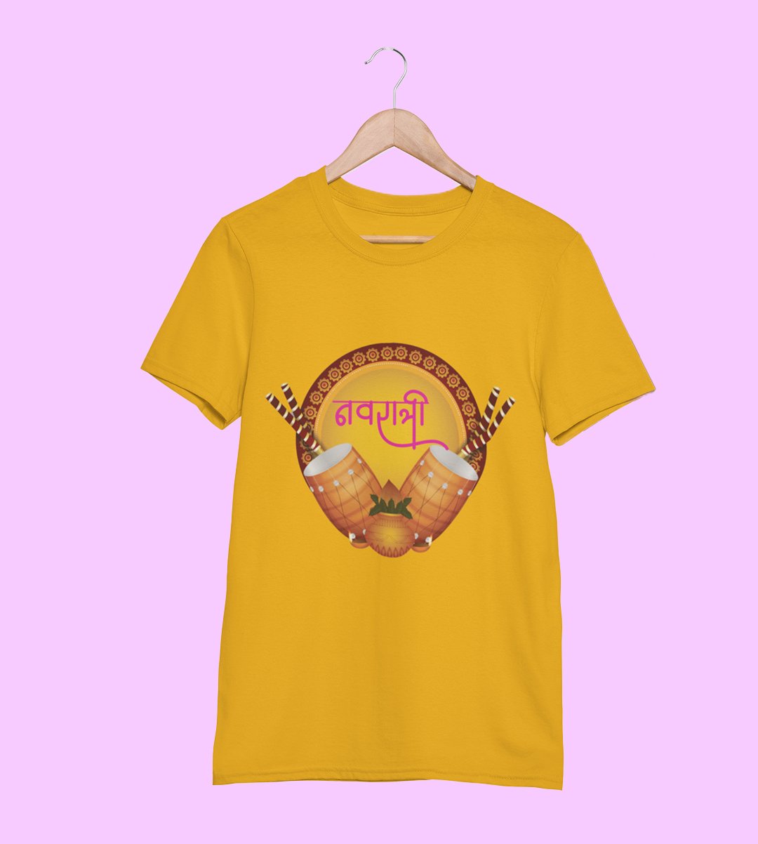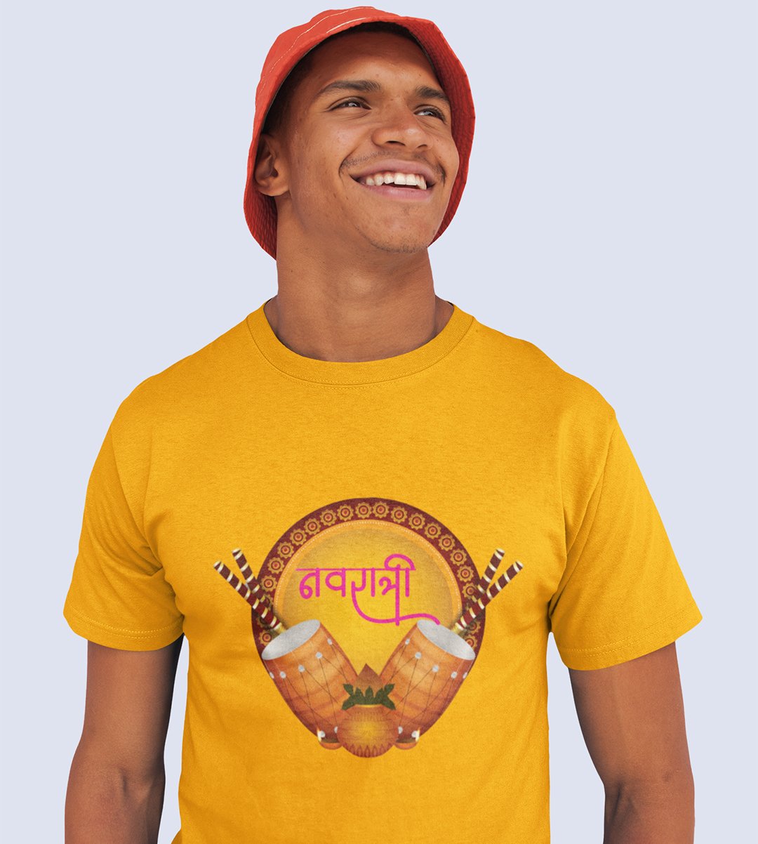 Navratri is a very auspicious festival for hindus. It takes place at the beginning of October and sometimes September. Enjoy the 9 days of festivities with full zeal and make yourself submerged in the love of Maa Durga. Navratri is also known as Durga Puja. And with this Tees, you can shine like a star during this festive season with our navratri themed cotton half sleeved Tshirts. You can pair our t-shirts with trousers and denim of your choice and make it a weekday smart casual or weekend wear. This is durable. This tshirt is smooth and soft which makes you comfortable to wear during all seasons. The printing in it is durable and odourless. It has five sizes, S,M,L,XL,XXL. The Tshirt colour is intact even after repeated washes. It can be kept in your wardrobe and hangers. Please avoid washing mashine to clean this Tee, it may affect the print. Hand wash only. We have brought you many navratri related designs printed on our different colour Tshirts to choose from. Grab it now.